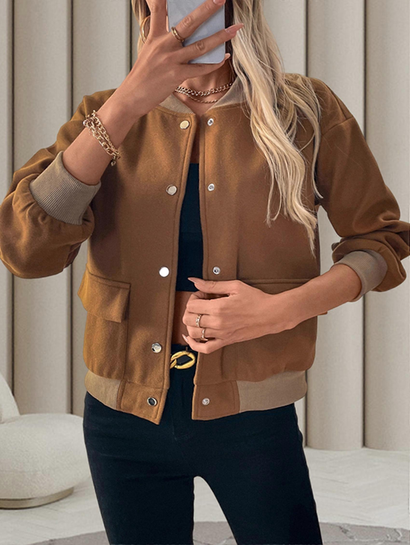 Jacket Women Varsity Button Down Fall Fashion Casual Short School Outfits with Pockets Coffee Brown M