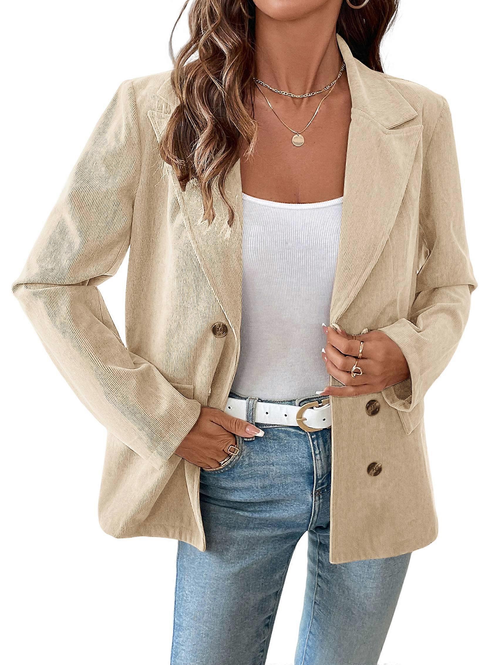 Women'S Casual Corduroy Blazer Jacket Elegant Notched Lapel Single Breasted Suit Jacket Tops Apricot S