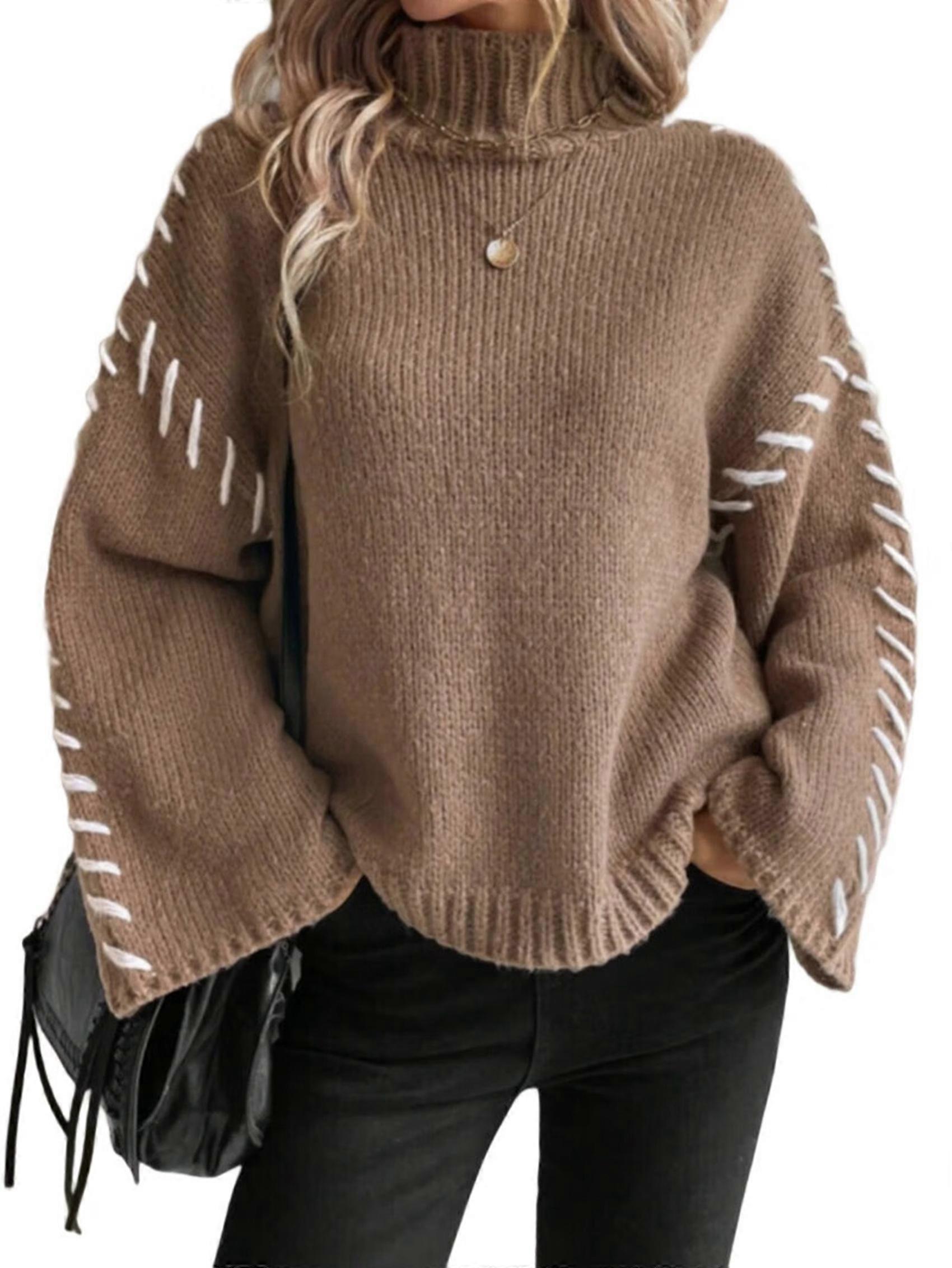 Women'S Chunky Knit Sweaters Fall Long Sleeve Mock Neck Oversized Pullover Tops Winter Fashion Clothes Dark Khaki S
