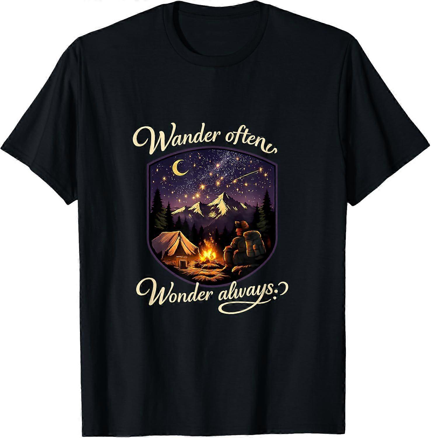 Wander Often Wonder Always Camping Mountain Badge T-Shirt Type 0554