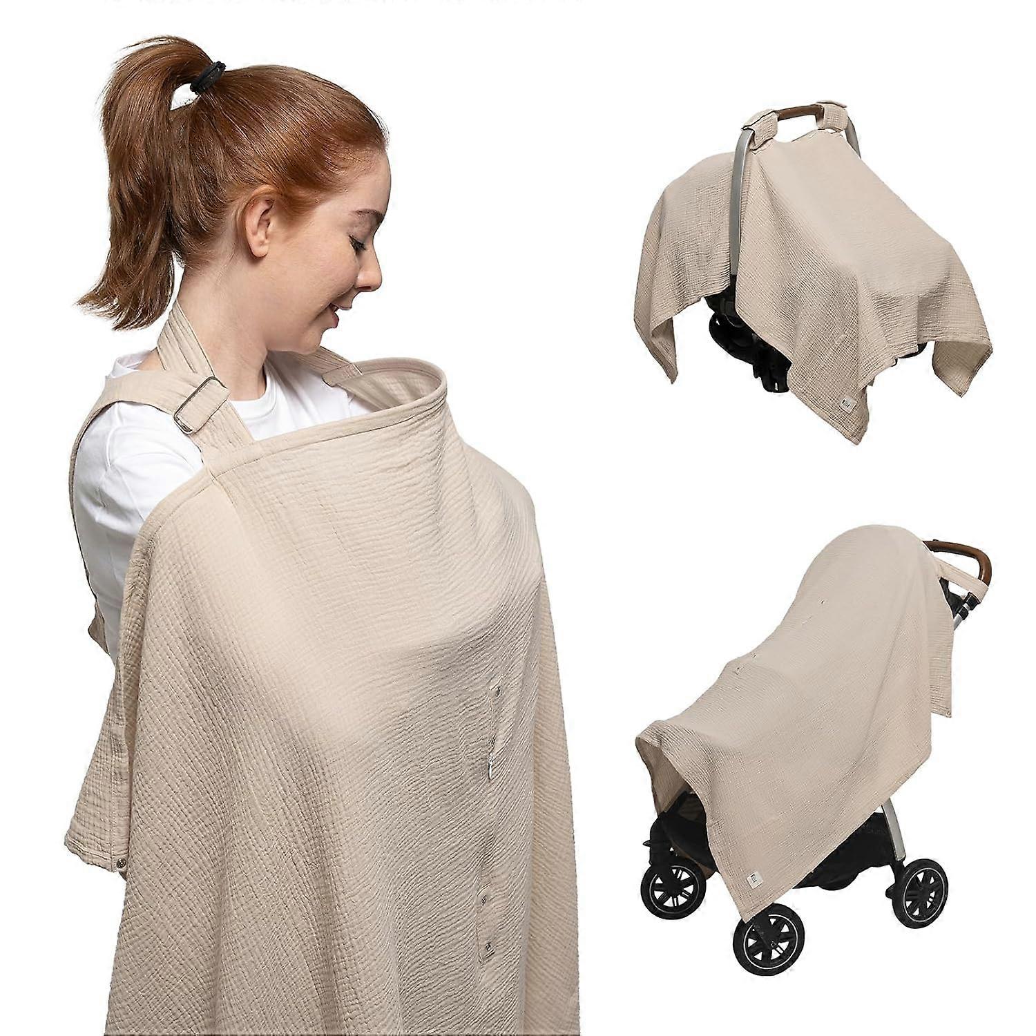 ✔️[Premium Muslin Cotton] - These breastfeeding covers for nursing, made from 100% cotton muslin, offers lightweight, breathable comfort that stays soft and gentle on the skin, even after many washes.<br>✔️[Wide Coverage] - This large cover, measuring 37 x 47 inches, serves as a breastfeeding cover for secure nursing in public, a bottle feeding cover to keep babies focused, and a pumping cover for added privacy during milk expression, while also fitting universally as a baby car seat cover.<br>✔️[Arch Neckline &amp; Adjustable Back &amp; Neck Strap] - This nursing cover features a rigid arch neckline for easy eye contact with your baby and airflow while breastfeeding, along with adjustable neck and removable back straps for safe, private nursing. Thanks to its unique &amp; chic buckle, the neck strap can be easily closed and locked. Two discreet back pockets offer easy access to essentials like burp cloths and pacifiers during or after feeding.<br>✔️[Stylish Gift For Mom &amp; Baby] - With its neutral color, our nursing cover provides versatile style for all moms and works as a gender-neutral baby car seat cover. Its elegant design and gift-ready packaging make it the perfect present for both mothers and moms-to-be.<br>✔️[Happiness Promise] - While we’re confident you’ll be delighted with products, your satisfaction is our priority. If you’re not completely happy, you can easily return it. So, you can Add it to your cart and Enjoy it!