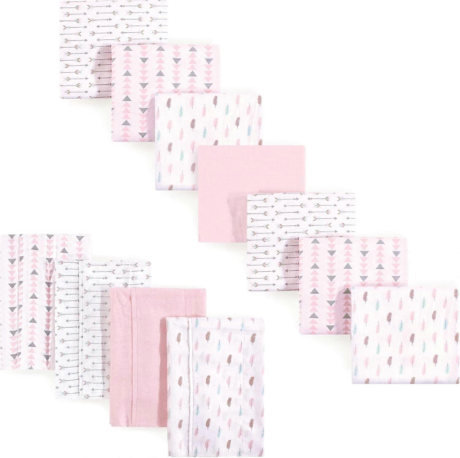 Unisex Baby Cotton Flannel Burp Cloths and Receiving Blankets, 11-Piece, Girl Feathers, One Size