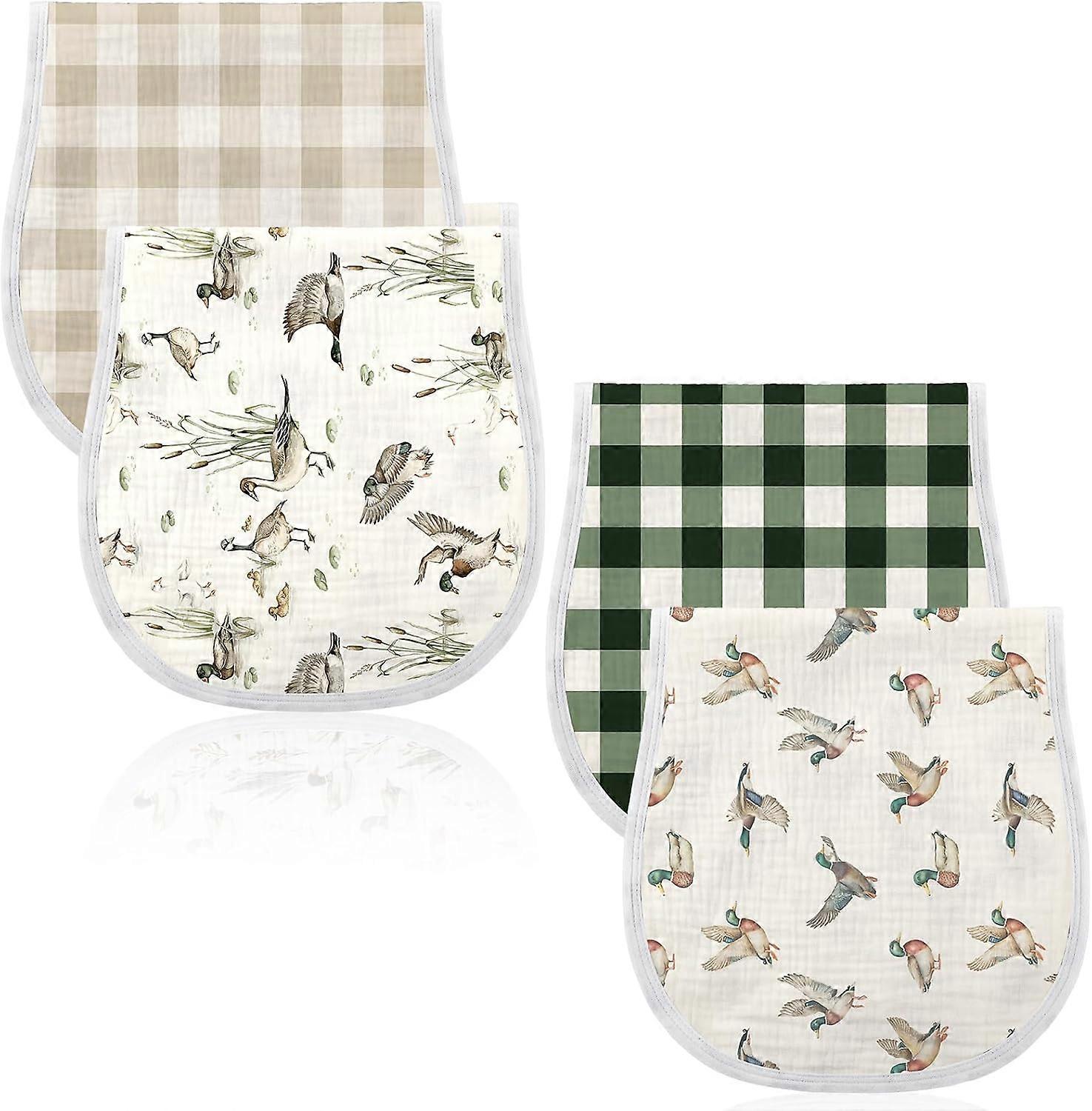 4 Pcs Mallard Duck Baby Burp Cloths 100% Cotton Absorbent & Soft Burping Cloth Large 22'' x 10" Newborn Towel 2-in-1 Baby Spit up Burping Rags Set