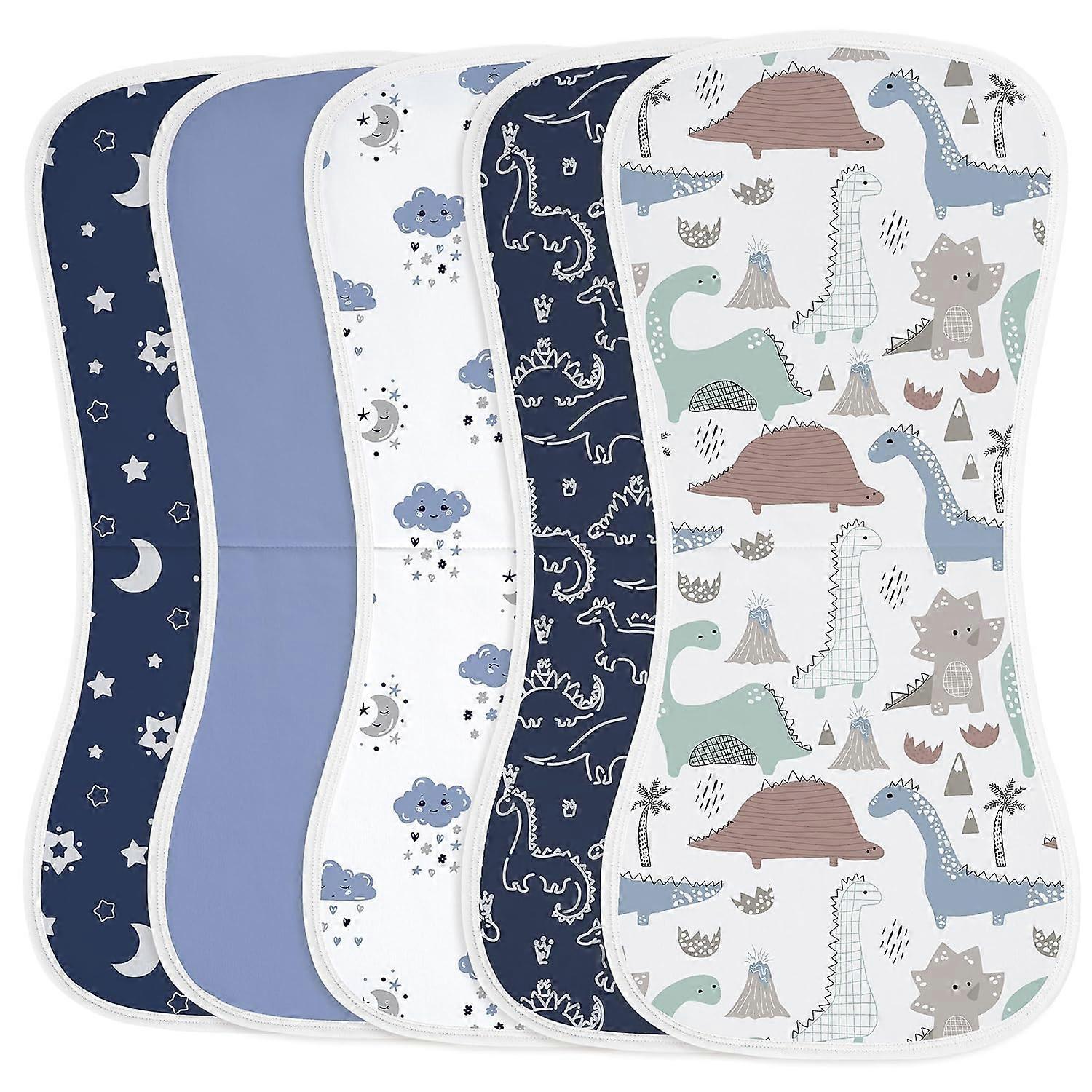 Baby Burp Cloths 100% Organic Cotton 5 Pack Burping Cloths for Babies Boys Girls Large 21''X10'' Extra Soft and Absorbent Dinosaur(Random color)