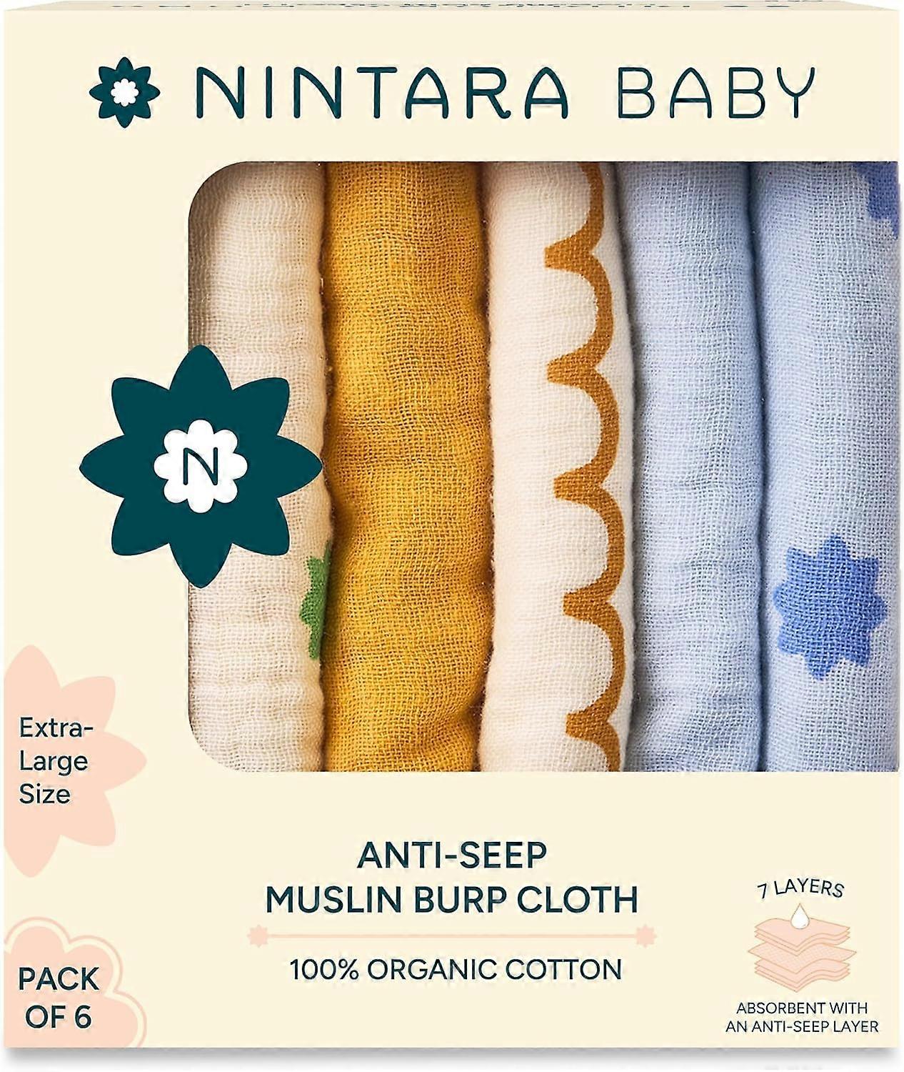 Anti-seep Burp Cloths - 100% Organic Muslin Cotton, 7-Layer Absorbent & Waterproof, Extra-Large (22" x 12”), Soft & Hypoallergenic, Multipurpose Baby