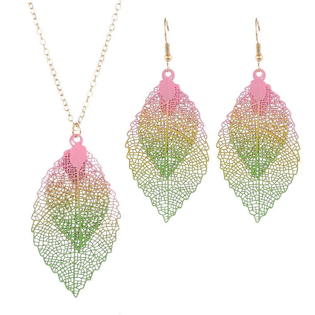 Charming Leaf Necklace Ear Drops Jewelry Set for Women 1Set Assorted Color