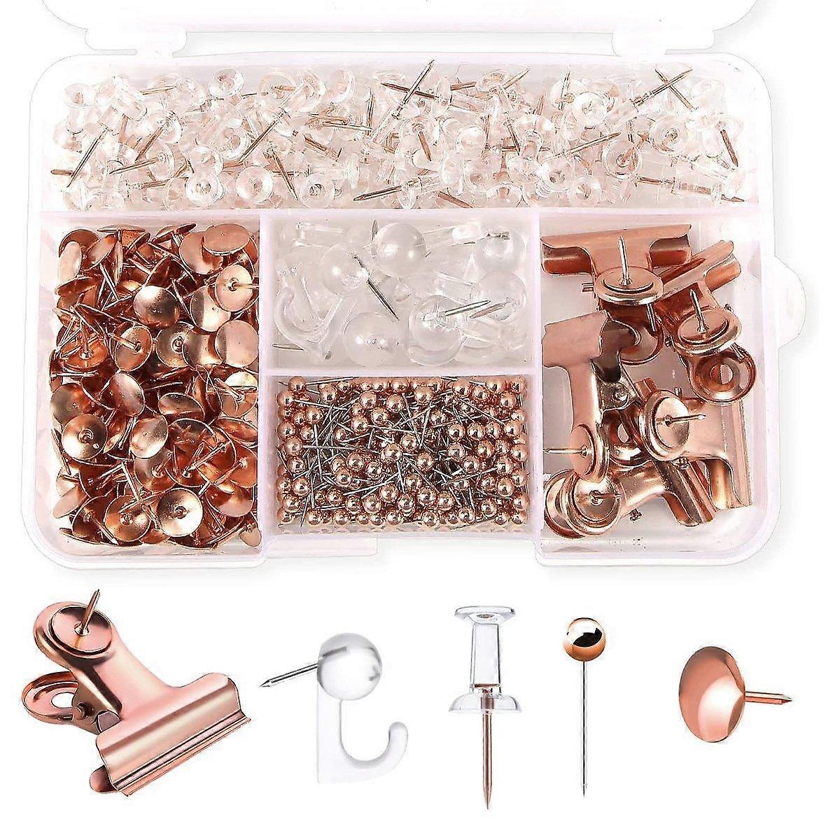 465Pcs Rose Gold Thumbtacks Binder Clips Push Pins Set Office Supplies With Box School Supplies