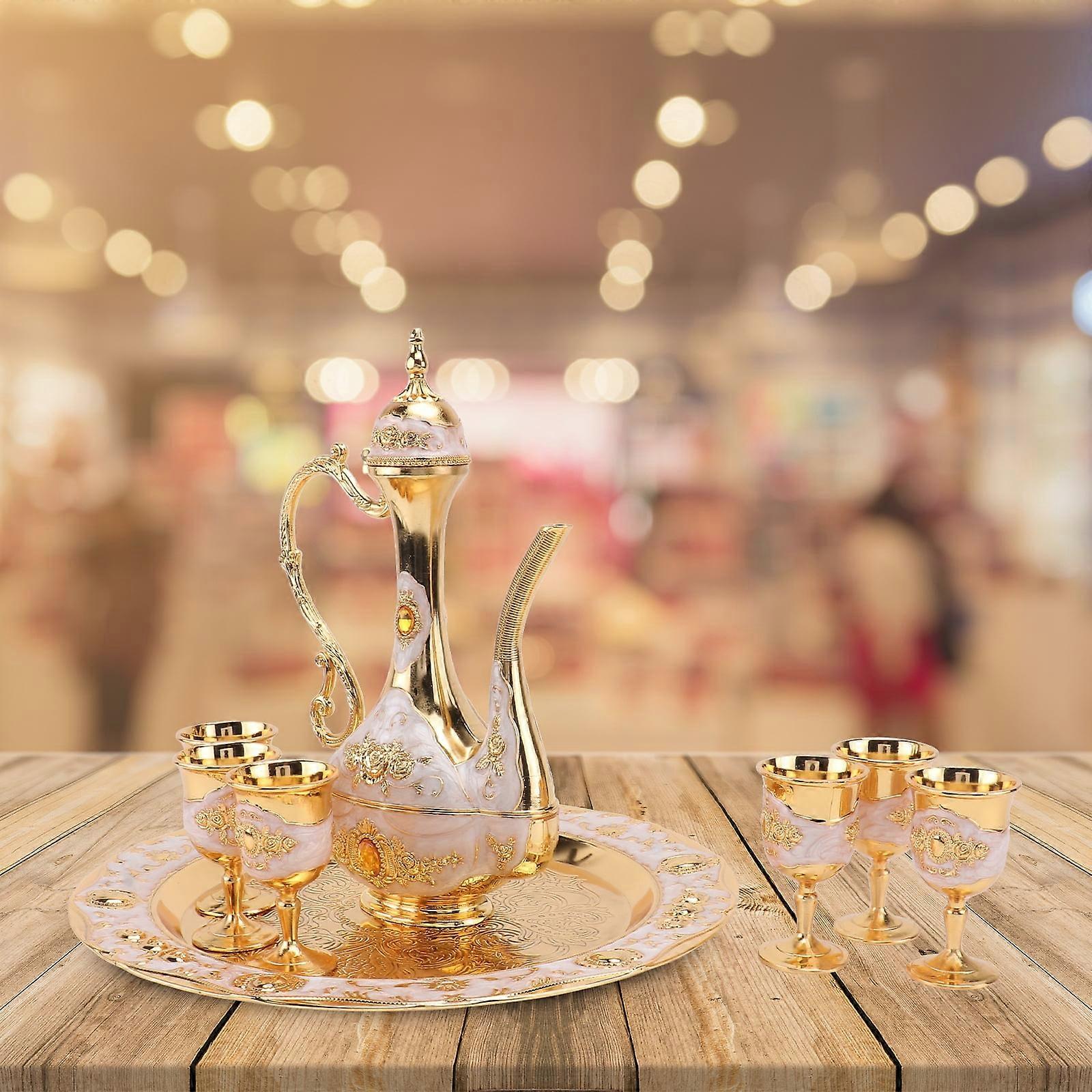 1 Set of Decorative Wine Cups Wine Pot with Tray Weg Adornment Gifts Golden