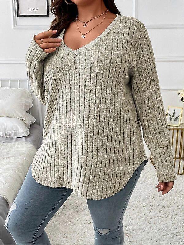 Fall/Winter Solid Color Plus Size Women's V-Neck Long-Sleeve T-Shirt With Striped Fleece Finish And Loose-Fitting Hood