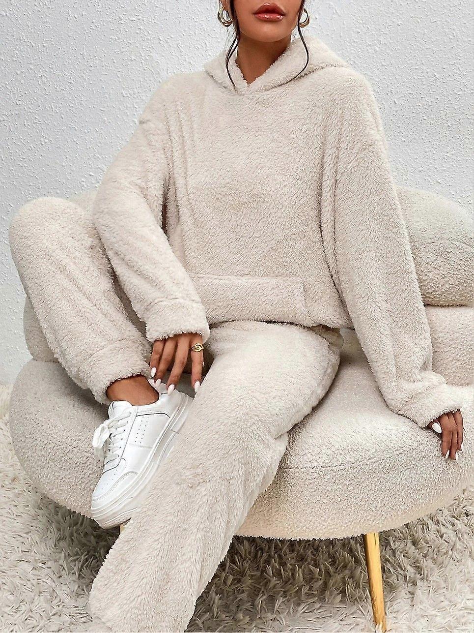 Autumn And Winter Leisure Women's Clothing Solid Color Plush Hooded Long Sleeve Trousers Suit