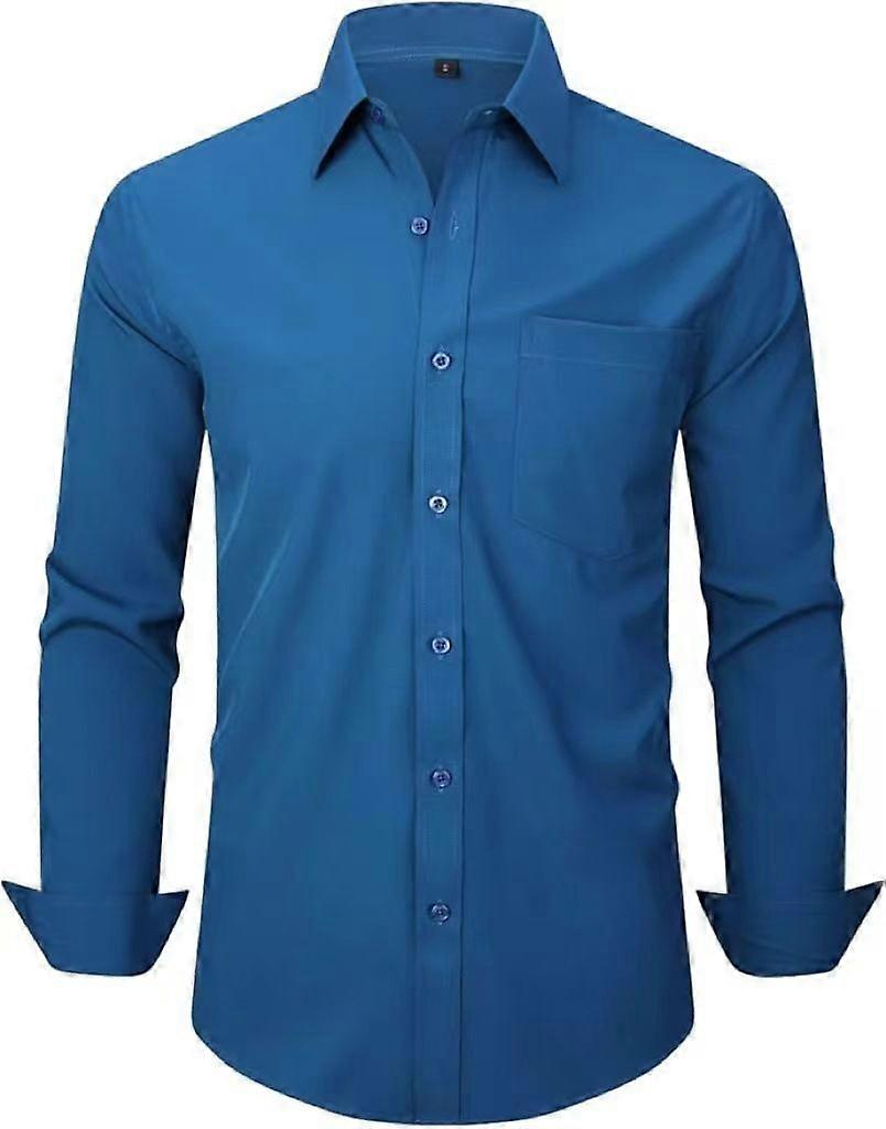 Long-Sleeved Shirt With Non-Ironing Four-Way Elastic, Popular Solid Color European Size Shirt