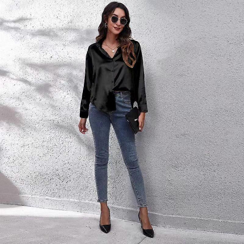 Shirt With A Sophisticated Design, Featuring A Simple V-Neck Cardigan And A Loose-Fitting Long-Sleeved Button-Up Top For Women.