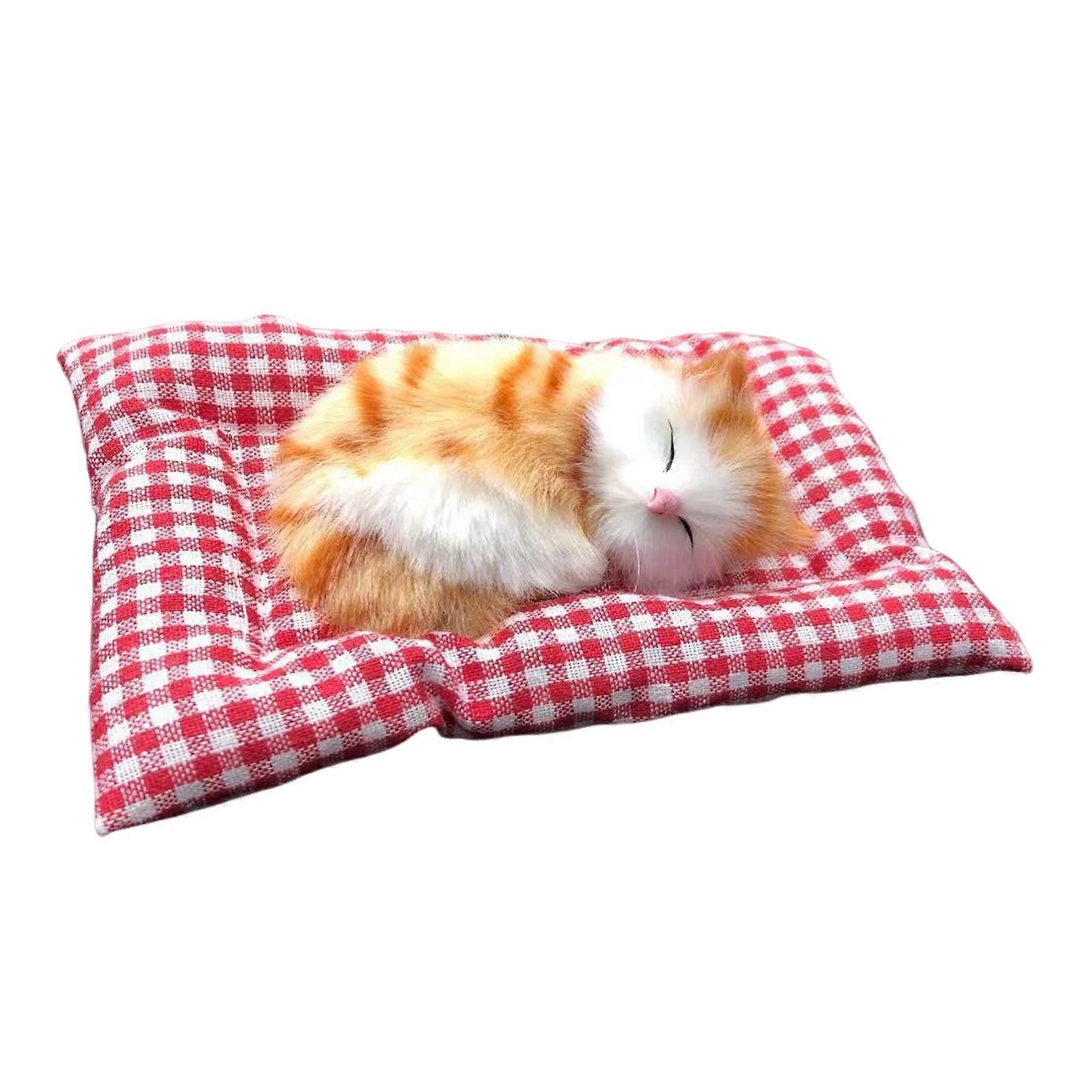 Simulation Sleeping Cat Decoration with Plaid Mat Odor Removal Bamboo Charcoal Plush Kitten Stuffed