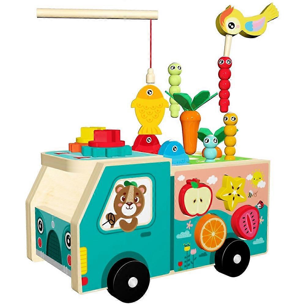 MWDH-2516 Multifunctional Wooden Farm Truck Shape Sorting Fishing Bead Maze Kids Early Educational Toy