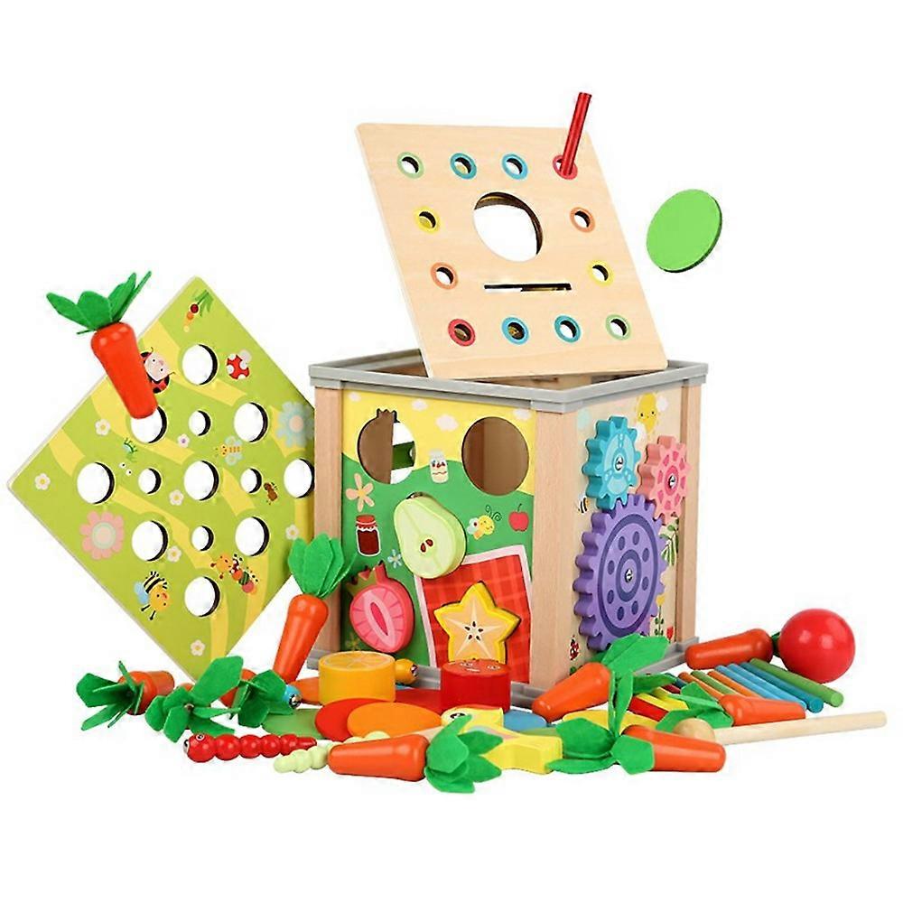 MWDH-021 9 in 1 Multifunctional Wooden Educational Toy for Kids Carrot Pulling Insect Catching Activity Cube