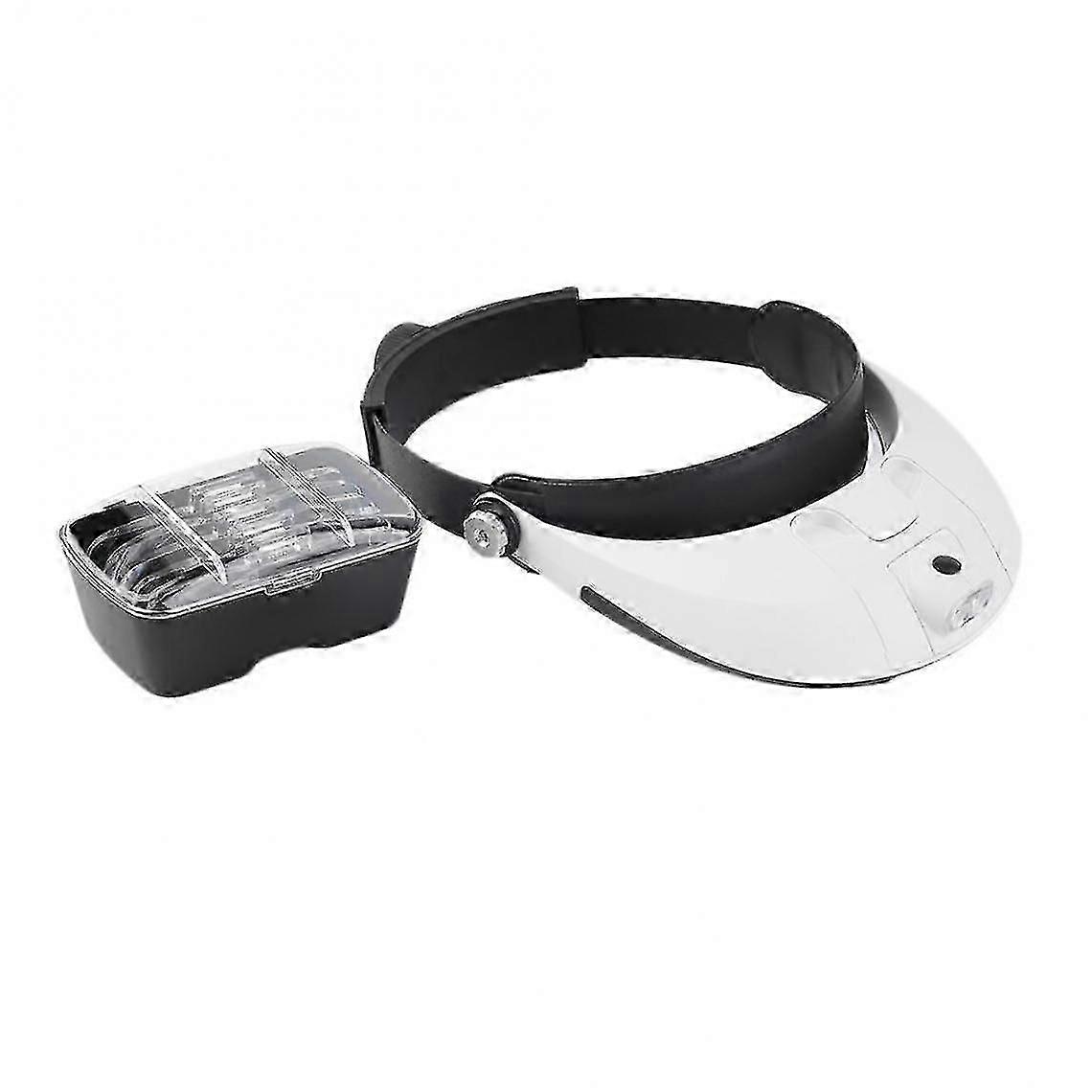 Architectural Spotlight - Universal Type - Magnifying Lens with Light-Colored LED Light. Highlights: Universal type, magnifying lens with light-colored LED light. Magnifying glass with illumination head, surgical magnifying glass light. Product will be shipped according to the color or size shown in the main image on the product page. Features: 100% brand new, high quality, 5 interchangeable lenses, different magnifications marked in the center of the lens. LED illumination light can rotate approximately 60 degrees, the light source box with battery compartment is removable. Adjustable headband ensures comfortable and secure wear. The light source box can be used independently as a light source after removal. Widely used in machining, electronics repair, jewelry appraisal, watch repair, and micro-carving. Features: Single lens magnification: 1.0x, 1.5x, 2.0x, 2.5x, 3.5x; Double lens magnification: 3.0x, 4.0x, 4.5x, 5.0x, 5.5x, 6.0x. Magnification is marked in the center of the lens. The table below shows the ratio of different magnifications to the distance of the observed object: Magnification | Observed Object Distance 1.0 x 300 ~ 350 mm | 1.5 x 240 ~ 260 mm | 2.0 x 215 ~ 235 mm | 2.5 x 205 ~ 225 mm | 3.0 x 160 ~ 180 mm | 3.5 x 135 ~ 145 mm | 4.0 x 125 ~ 135 mm | 4.5 x 110 ~ 130 mm | 5.0 x 100 ~ 120 mm | 5.5 x 80 ~ 95 mm | 6.0 x 60 ~ 85 mm | LED: 2 | Lenses: 5 | Batteries: 3 x 1.5V AAA batteries (not included) | Head: Adjustable | Shell: High-quality PC | Helmet Material: Environmentally friendly acrylic | Applications: Watch repair, jewelry appraisal, micro-carving, etc. | Colors: White; Black | Size: Approx. 25.5 x 20.5 mm 10.03 x 8.07 inches (cm) Package includes: 1 head-mounted illumination magnifying glass with LED light, 5 lenses (with plastic case)