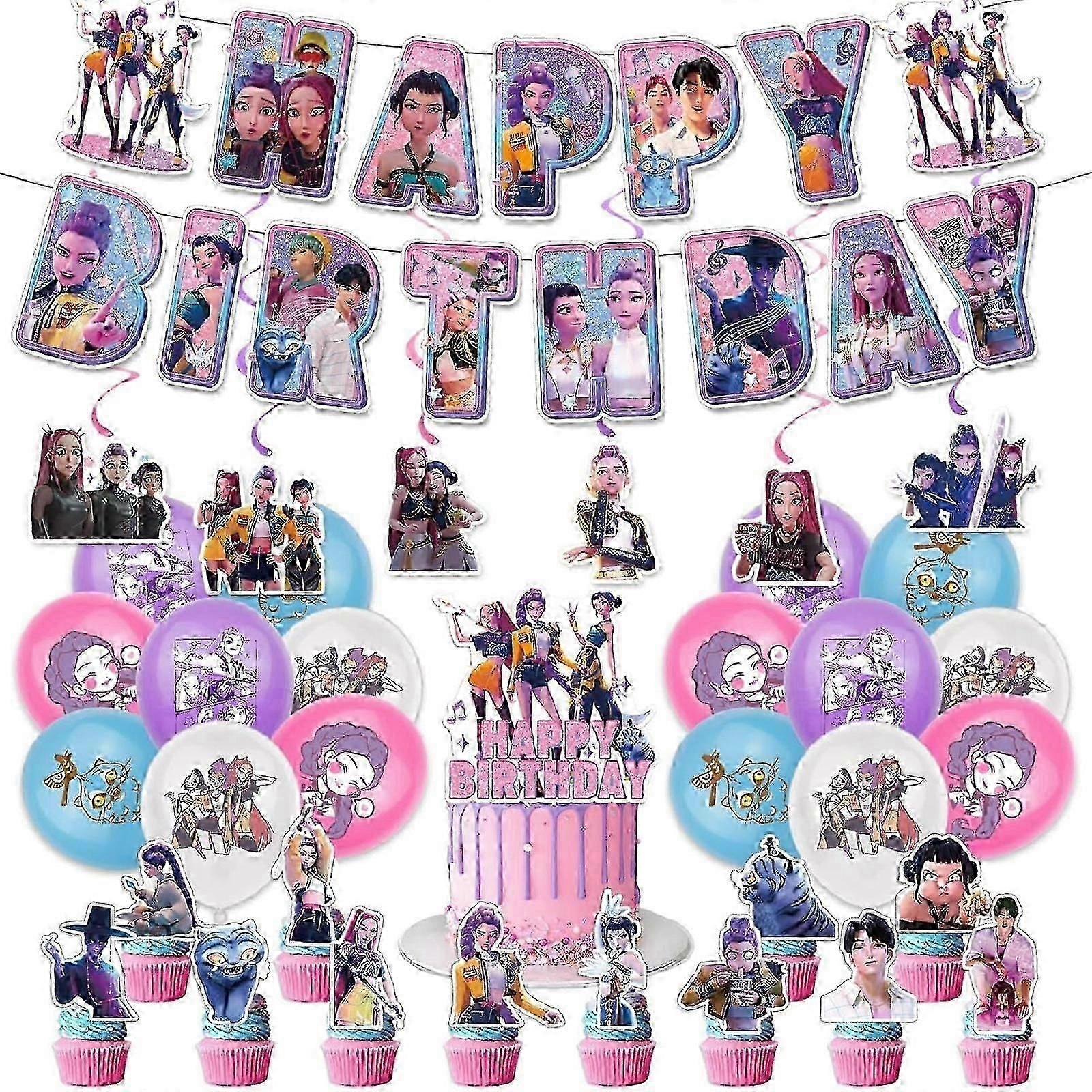 Demon Hunters Party Cutlery Set Banner Backdrop Balloons Cake Topper Outdoor Picnic Supply Birthday for Korean Kpop Anime PartyZZ57 S05