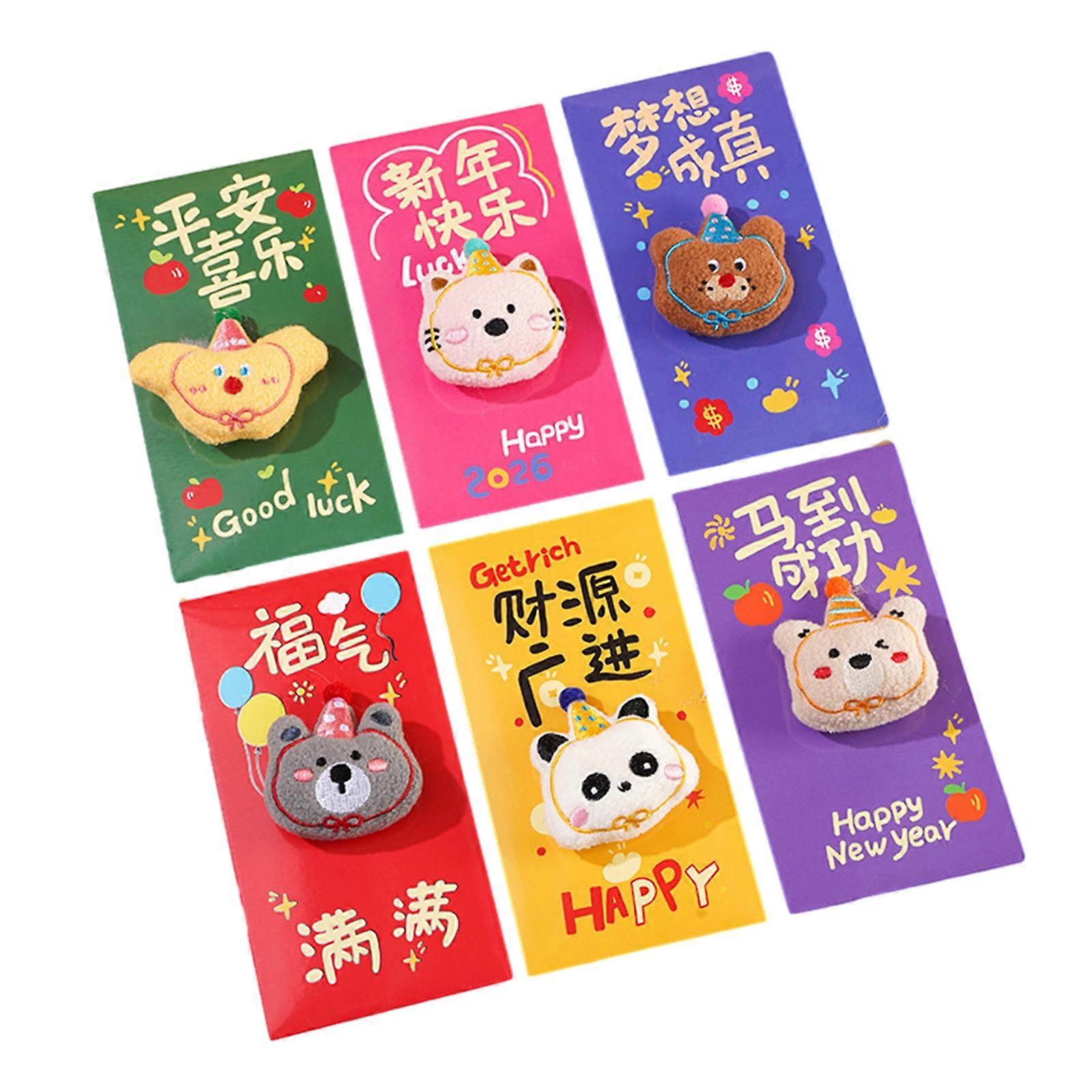 6Pcs Red Envelopes 3D Embroidery Plush Pendant Zodiac Horse Design Matte Cardboard Red Envelope 2026 New Year Gift