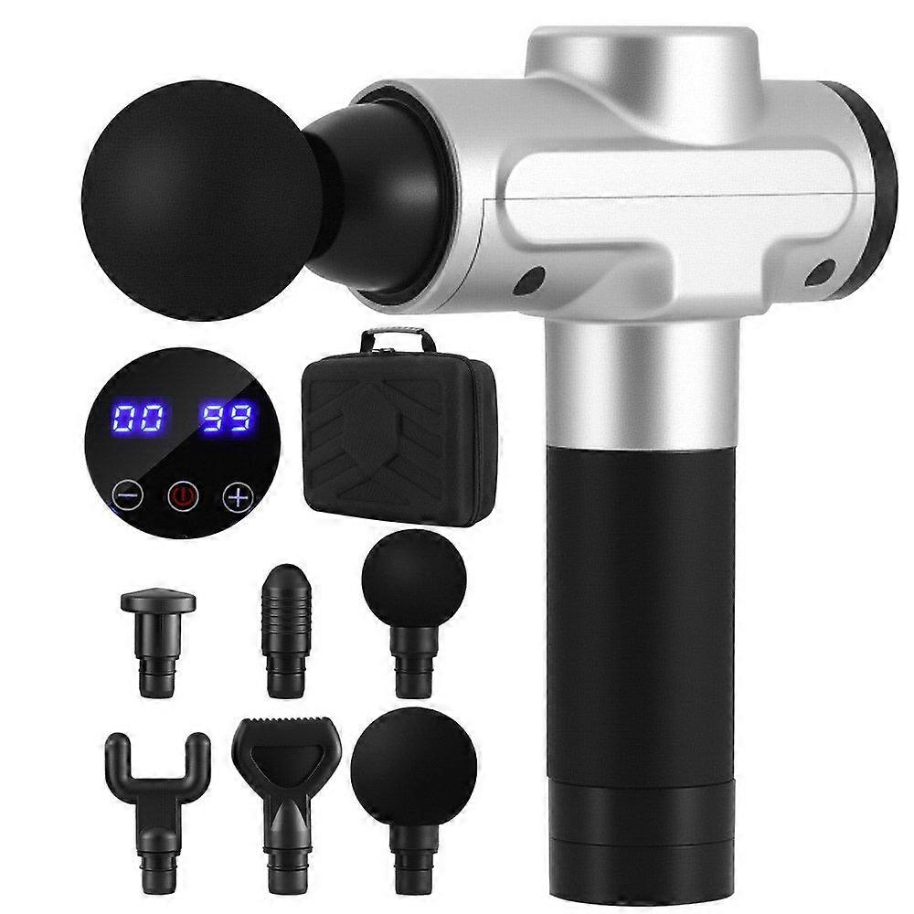 20W Brushless Powerful Motor For Deep Muscle Massage 1200-2700 Strokes/Min High-Frequency Vibration Quiet Glide Technology For Peaceful Use 30 Speed Levels For Customized Massages Long-Lasting Highly Efficient Lithium Battery (Up To 2 Hours) Smart Touch Lcd Display For Easy Operation 6 Interchangeable Head Attachments For Targeted Relief Usb Charging Cable Included Ergonomic Non-Slip Rubber Handle For Comfortable Grip Specifications: