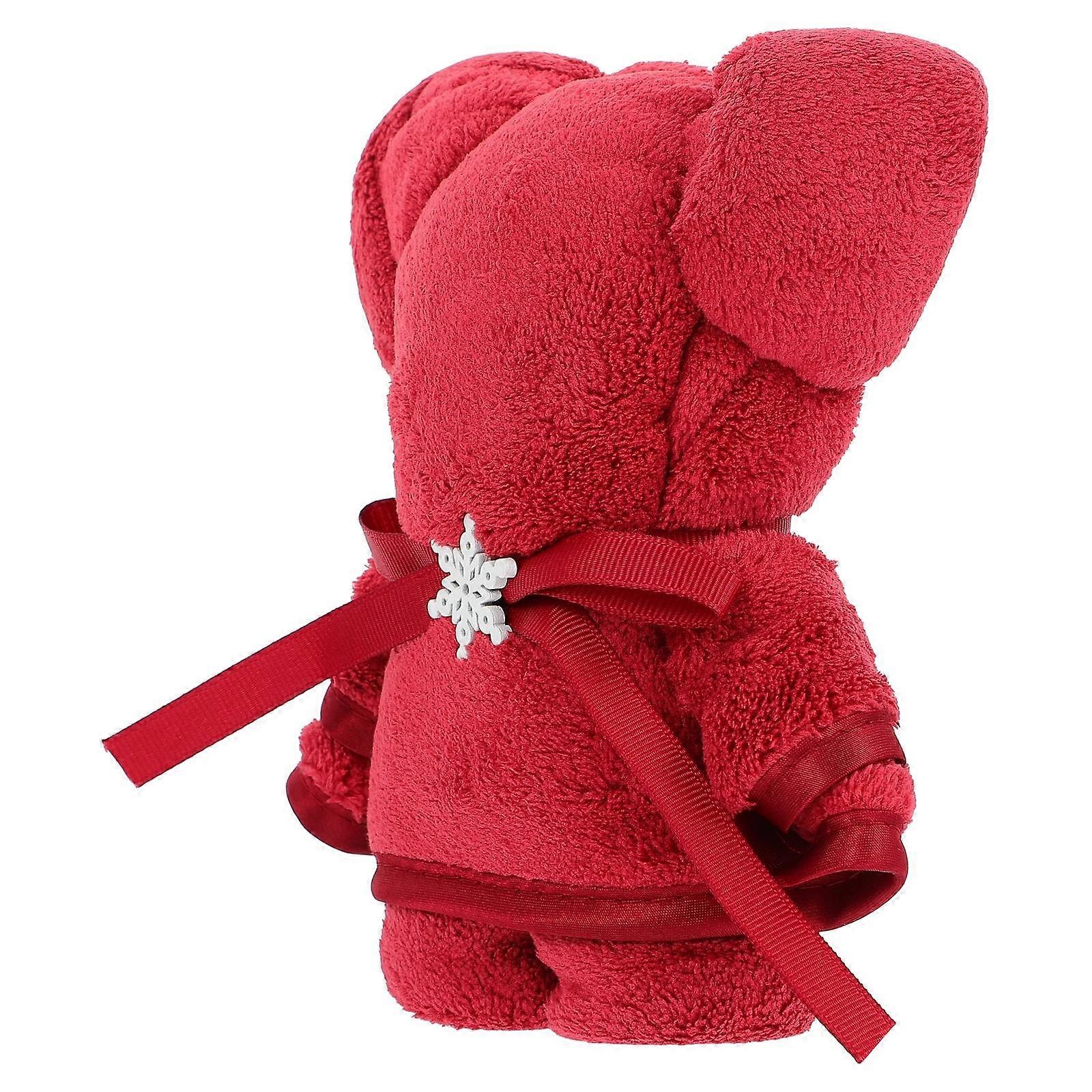 Red Coral Fleece Bear Towel Wedding Towel for Decor 1Pcs Decorative Washcloth