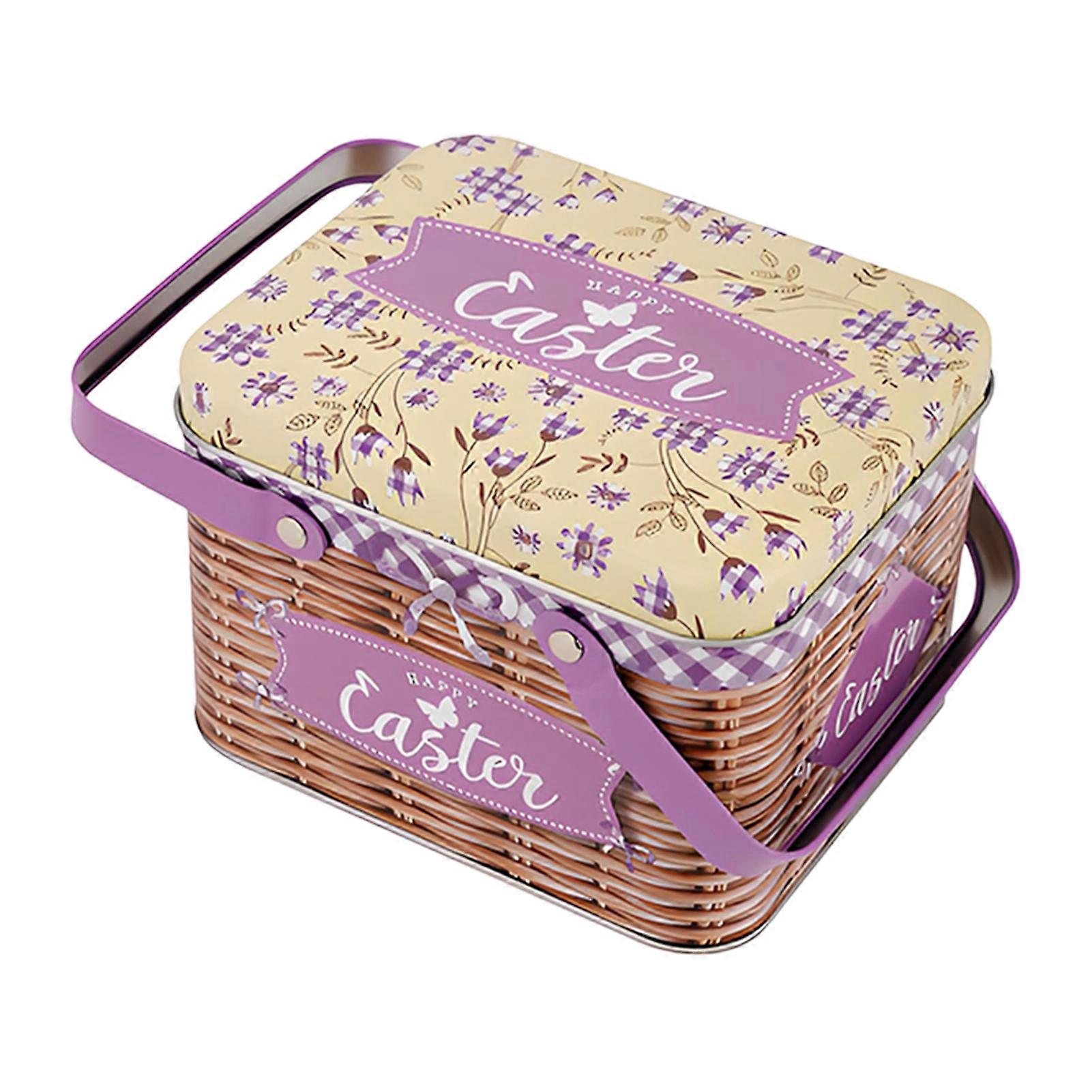 Easter Biscuit Storage Box Portable Tinplate Candy Box with 2 Handles Empty Tin Case Cookie Candy