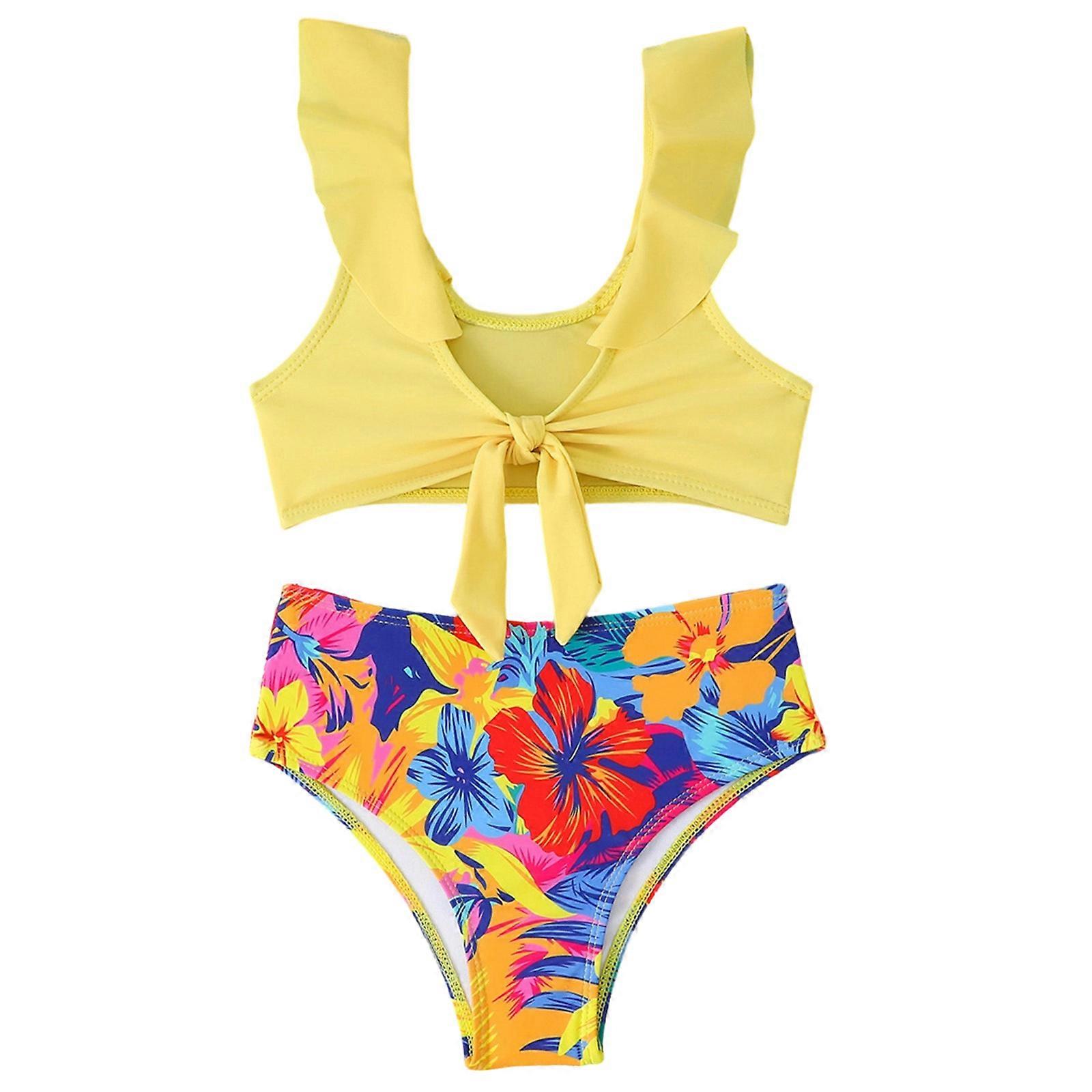 Colorful Kids Tankini Swimsuit Comfortable Stretchy Fabric Swimwear Outfit Ideal For Swimming Lesson Yellow 7T