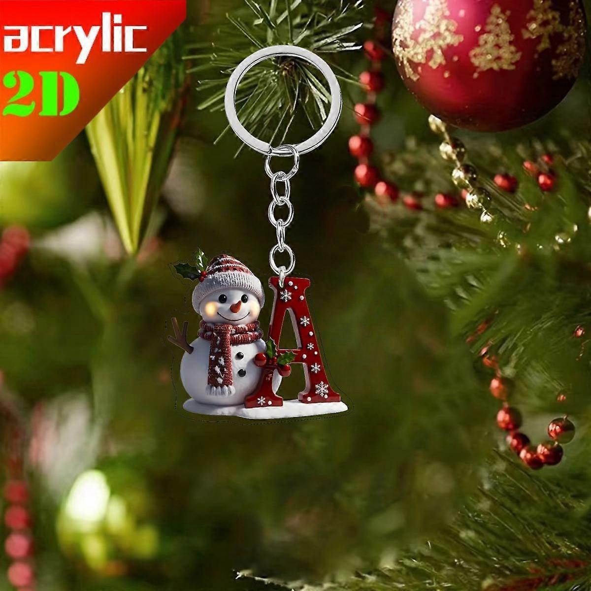 Snowman 2D Acrylic Christmas Ornament Keychain with English Letters Car Backpack Accessory