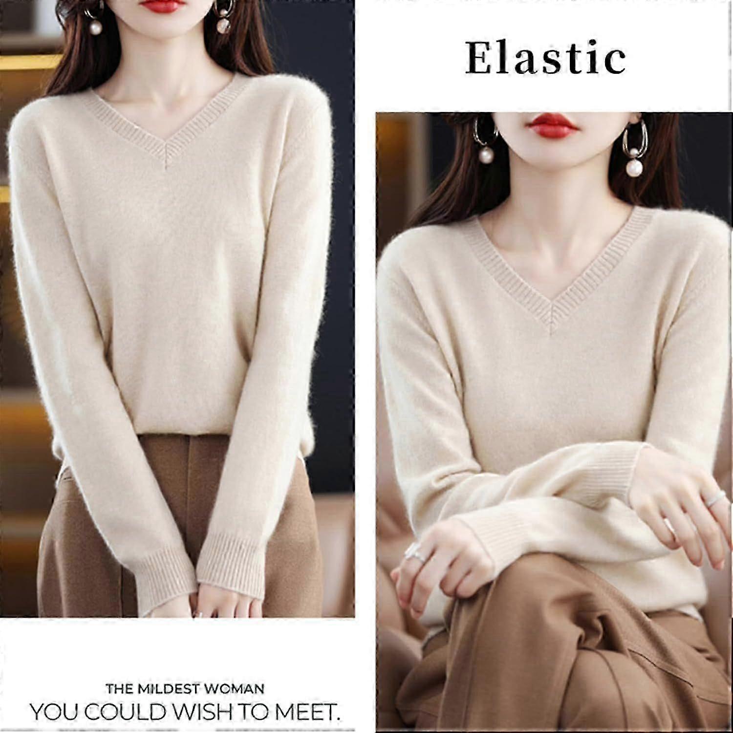 Cashmere Sweaters For Women, 100% Cashmere V Neck Long Sleeve Soft Pullover Sweater SZTCLV