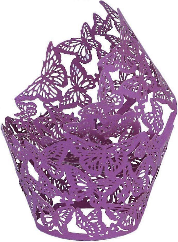 50PCs Butterfly Pattern Hollow Artistic Bake Cake Cupcake Wrappers Paper Cups