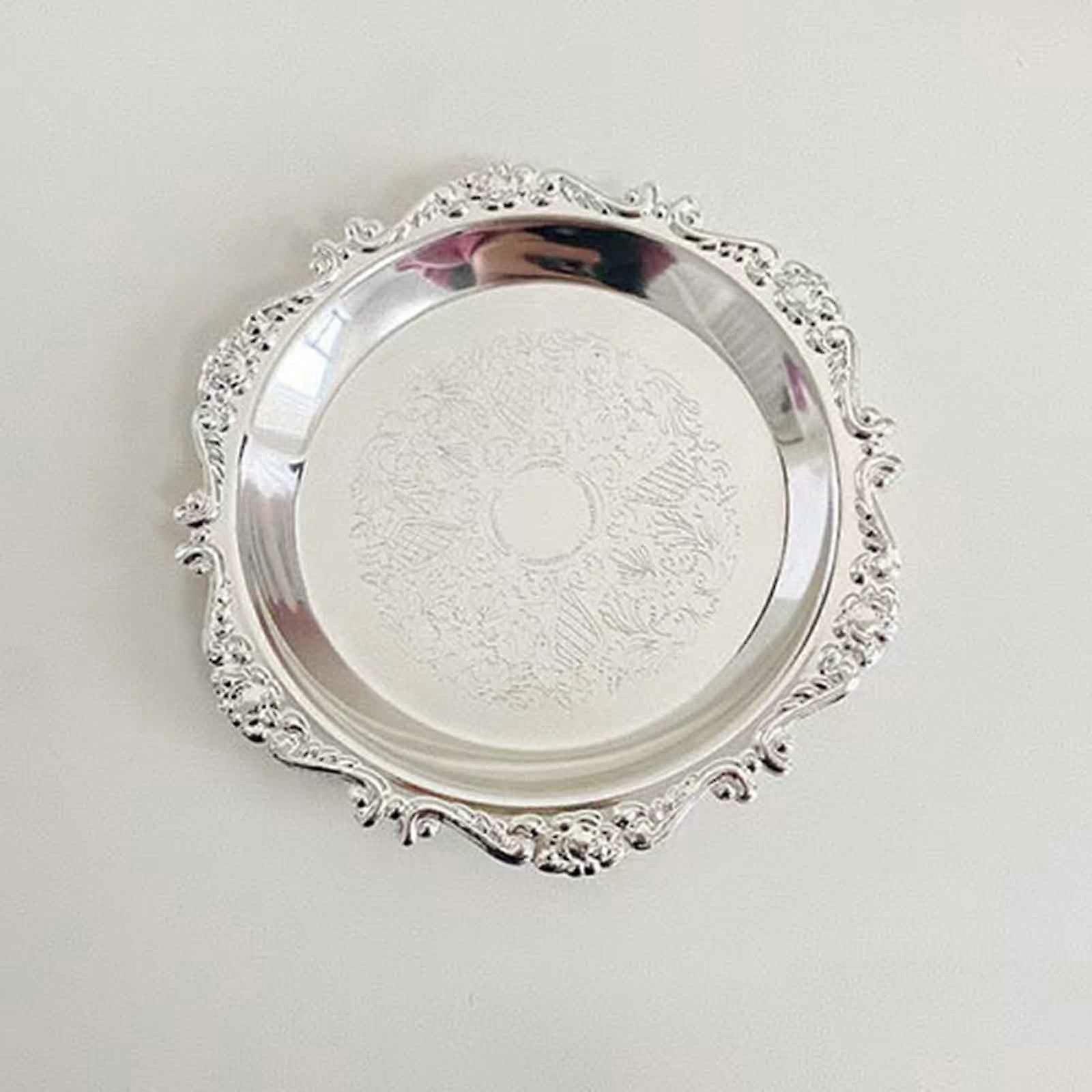 Gold Round Metal Decorative Tray – Serving Plate, Snack/Dessert/Cake Holder, Teacup & Jewelry Storage, Home Decor, Gift – Compatible with Modern