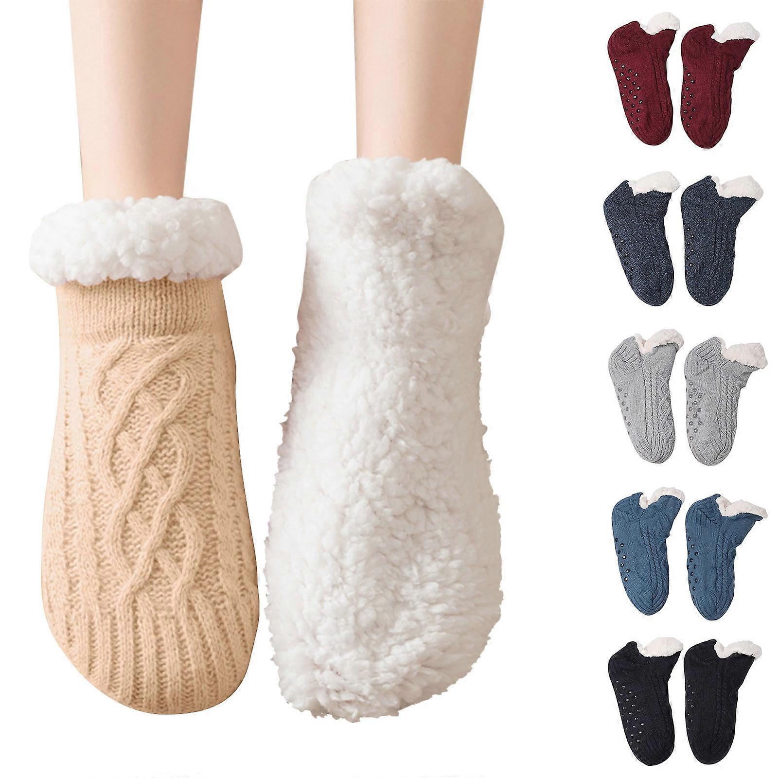 Kids Warm Slipper Socks with Anti-slip Grip & Thick Fleece Lining – Cozy Indoor Winter Socks for Girls, Black, Size 3-4 Years