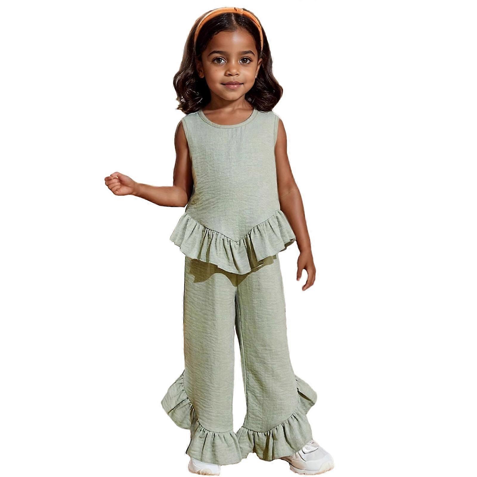 Toddler Girl Sleeveless Crop Tank & Shorts Set, Green, 3-4 Years – Cute Summer Outfit Compatible with Kids’ Fashion
