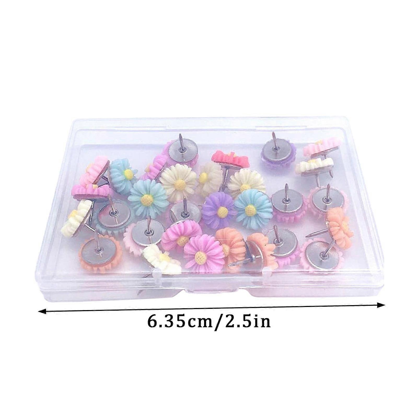 1 Box Of Small Daisy Flower Pins Creative Color Resin Rose Small Flower Pushpin Corkboard Nail