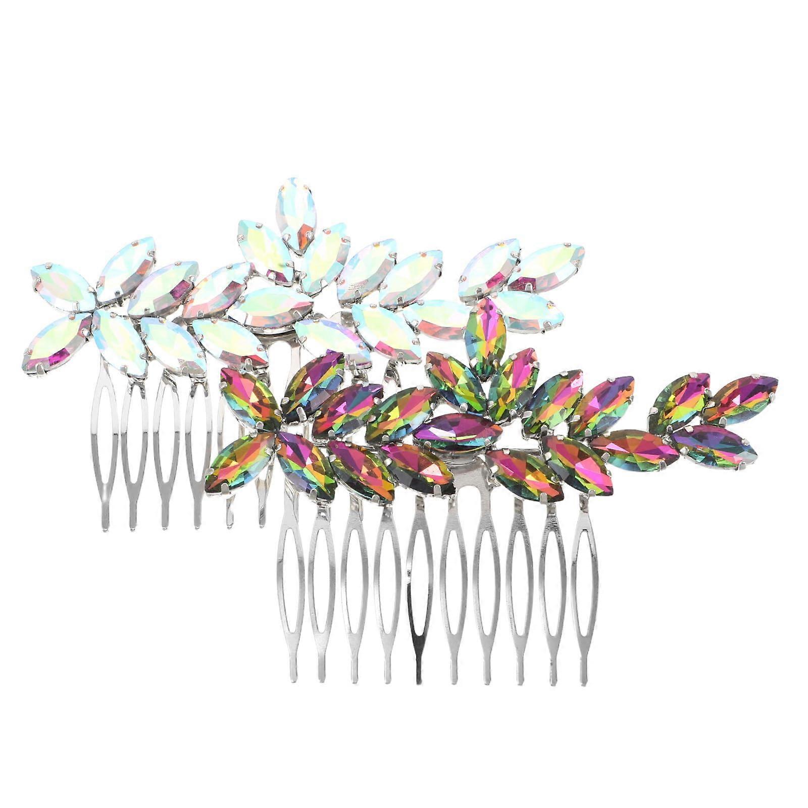 2pcs Sparkling Rhinestone Bridal Hair Comb Set Wedding Headpiece for Updos Proms and Parties