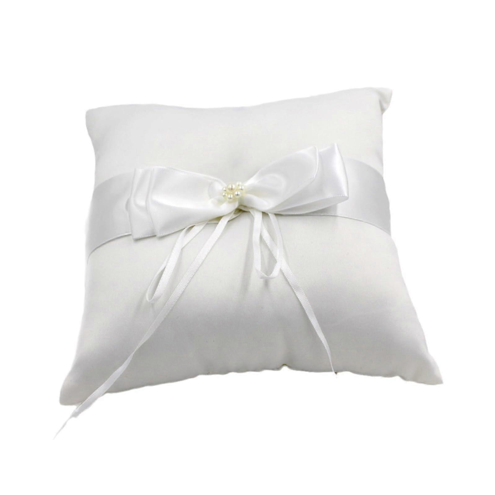 Elegant Pearl Bow Wedding Ring Bearer Pillow Soft HandSewn Cushion for Beach Ceremonies
