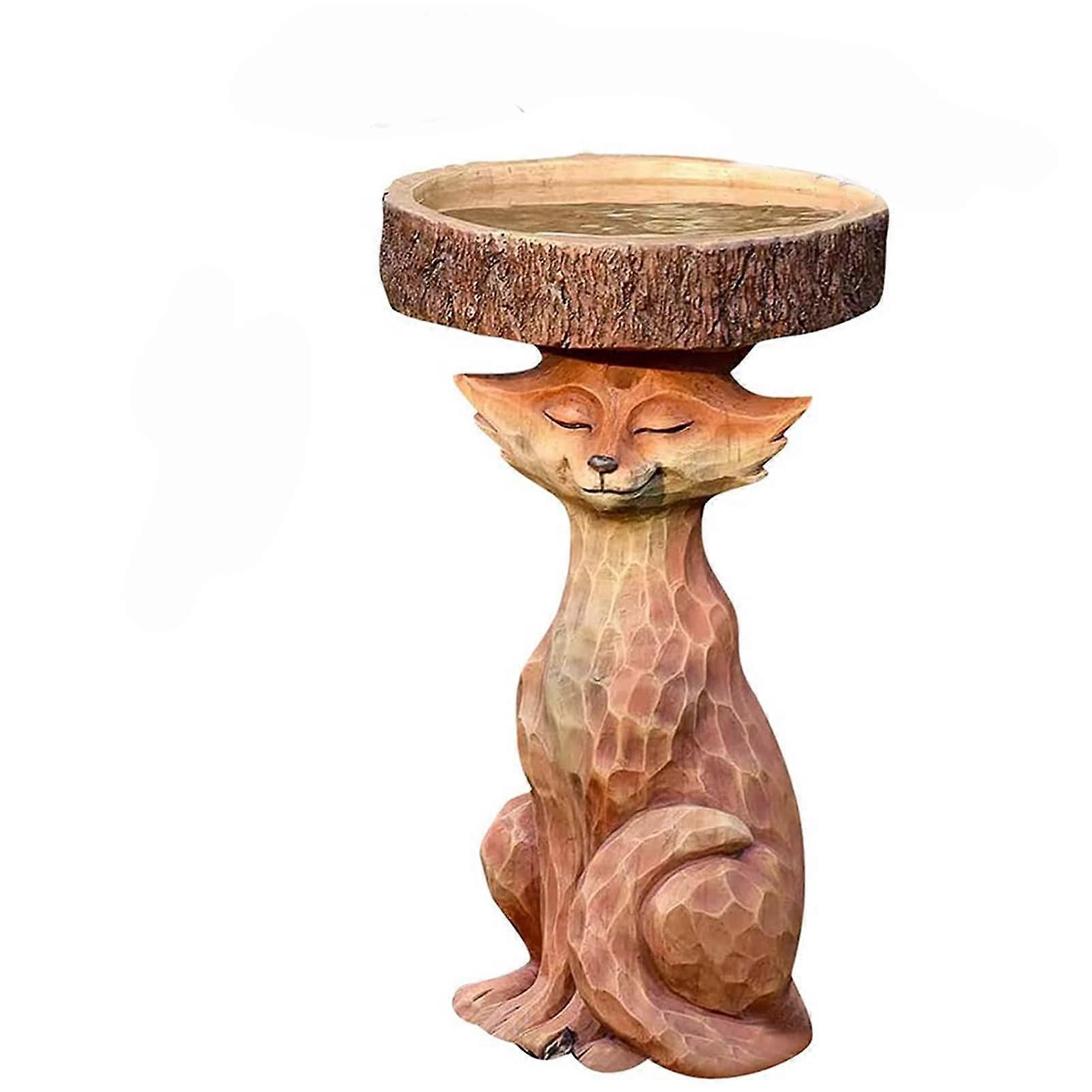 Fox Bird Feeder Statue with Bird Bath Bowl, Resin Garden Decor Sculpture for Outdoor Yard