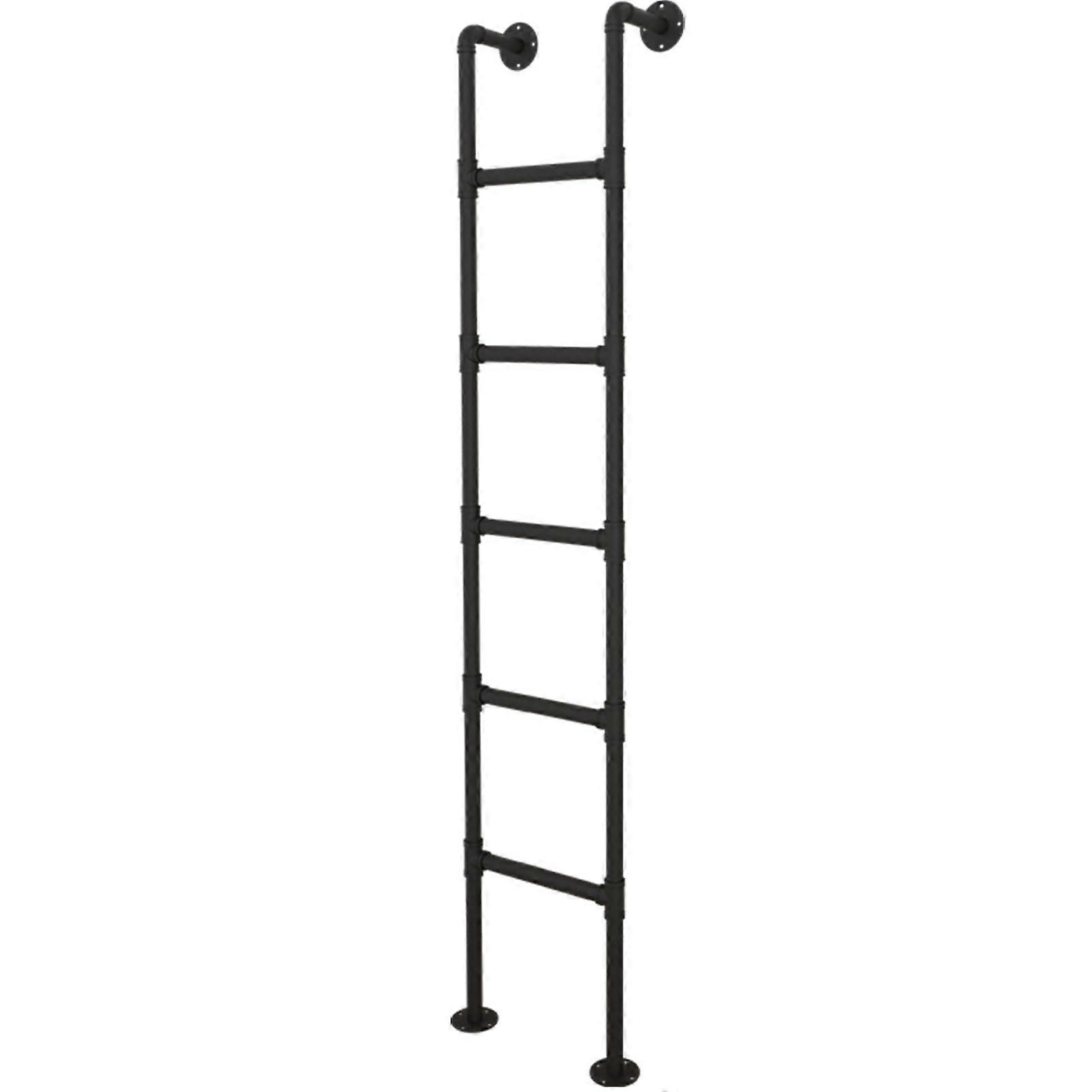 Wrought Iron Basement Egress Ladder 54in Black Round Pipe Fire Escape Ladder 1.37m SpaceSaving