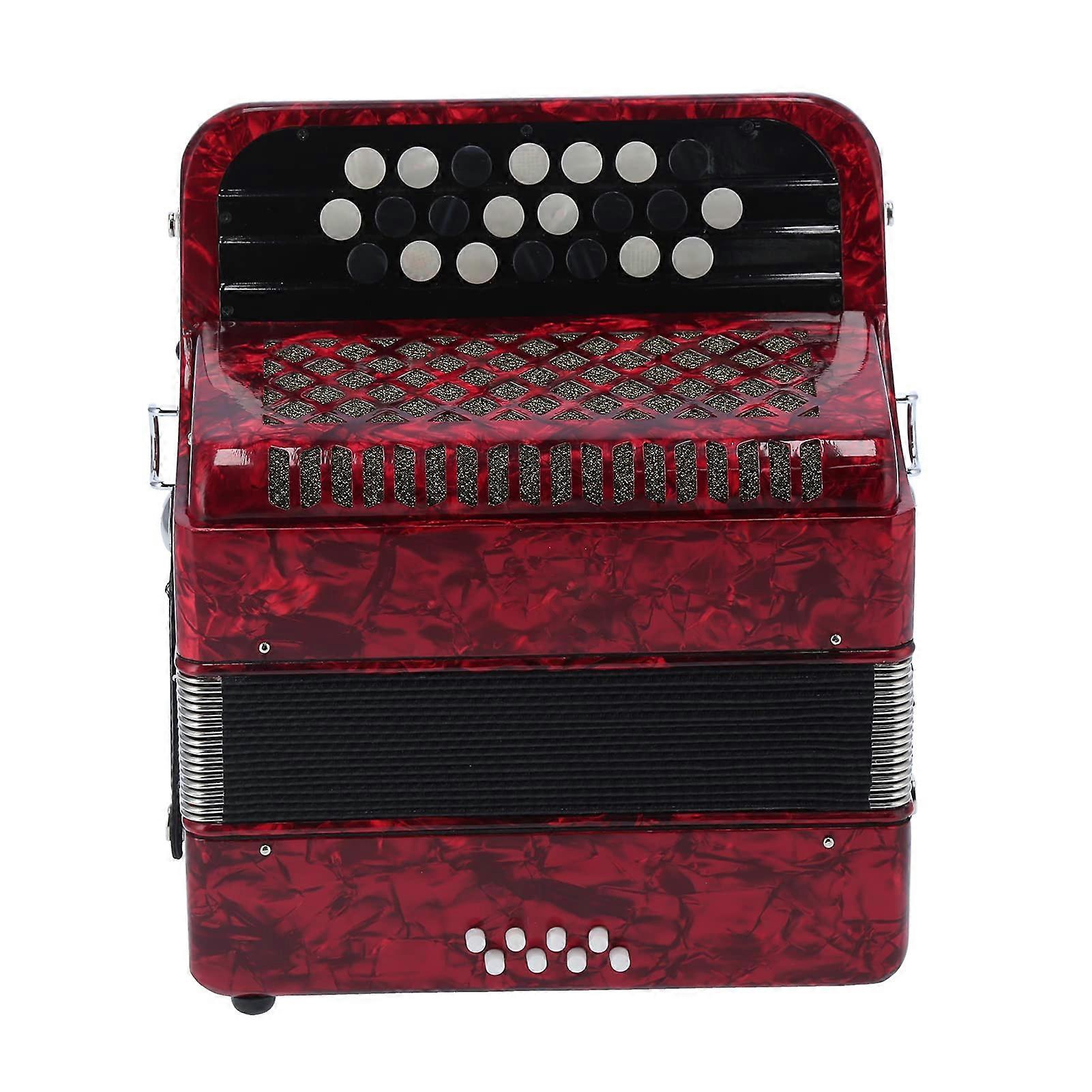 Accordion 22 Key 8 Bass Beginner Button Instrument with Responsive Round Buttons, Red ABS Steel