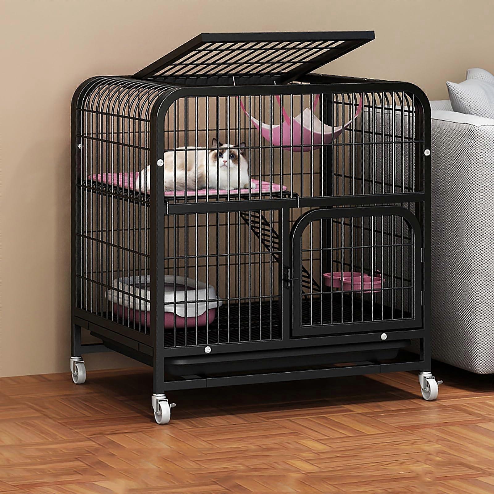 Heavy Duty Dog Crate with Wheels, Double Layer Indoor Dog Cage with MultiDoor Access and Tray