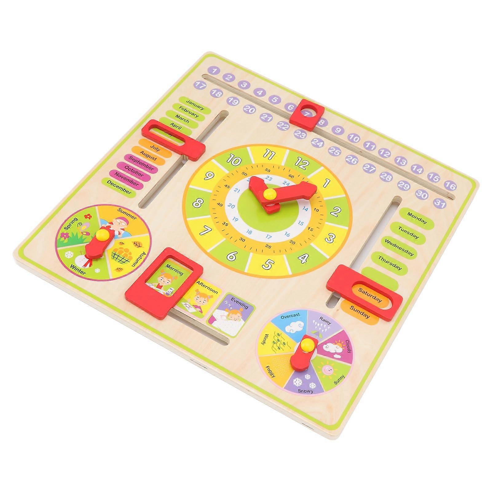 Wooden Learning Clock and Calendar for Kids – Interactive Educational Toy to Teach Time and Date