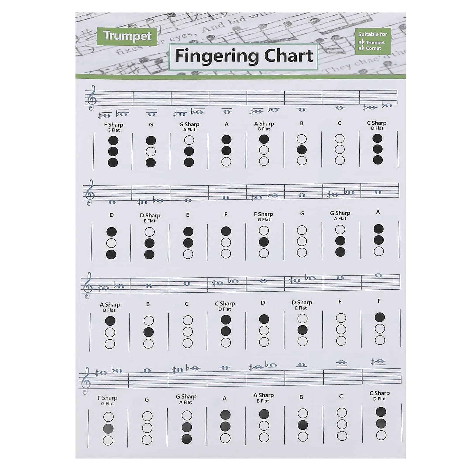 Trumpet Fingering Chart and Chord Poster for Beginners, White 11x8.3 Inch Music Reference Guide