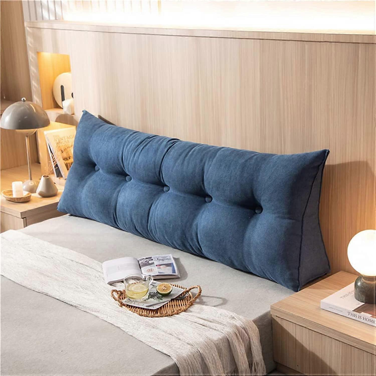 Bedside Headboard Cushion Dark Blue 60x20x45cm Long Backrest Pillow with Detachable Cover