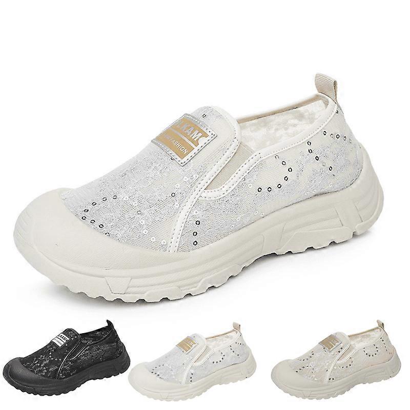 Women's Breathable Slip-On Knit Loafers, Non-Slip Sole, Wide Toe & Glitter Design – Comfortable Casual Shoes for Work, Travel, Running