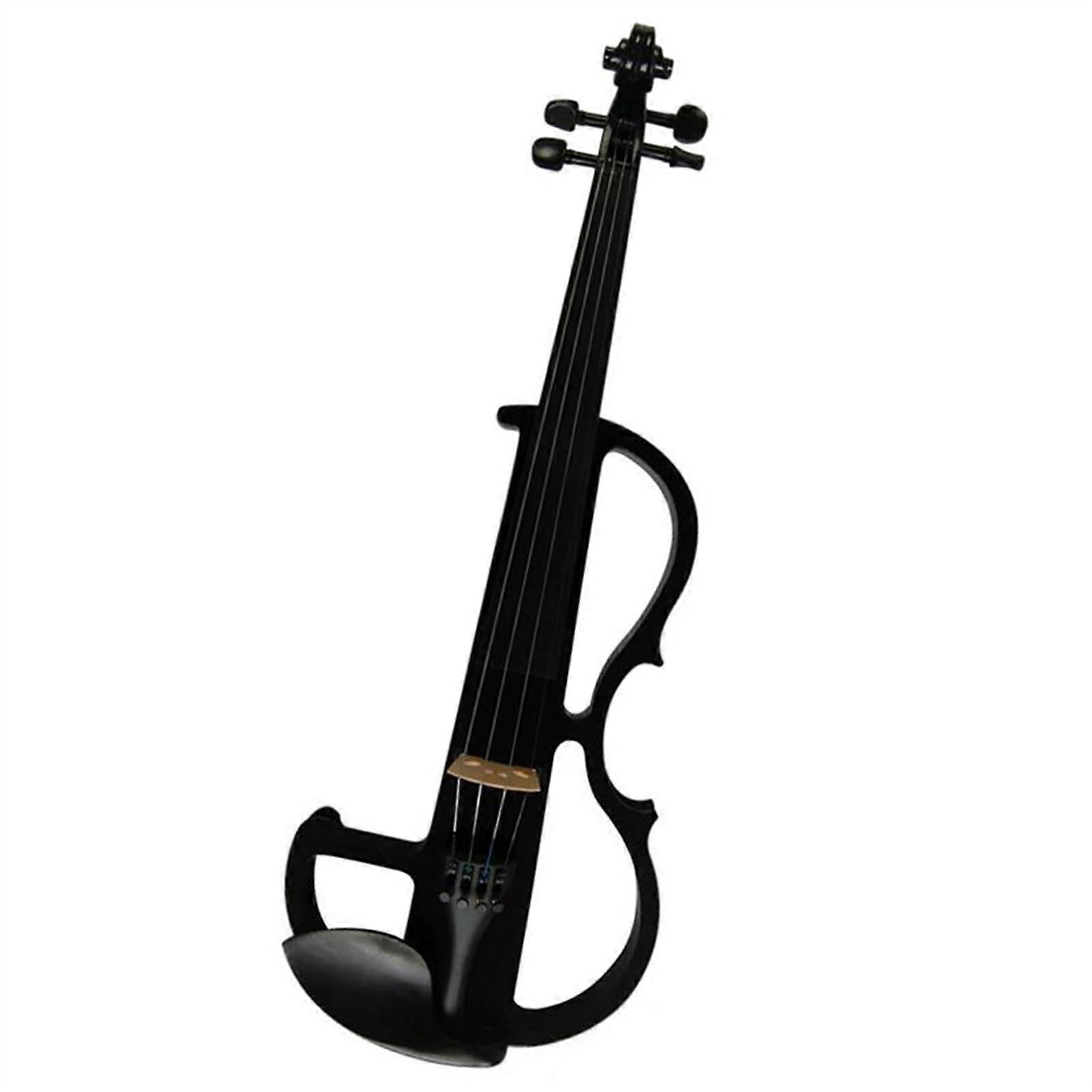 Silent Electric Violin 4/4 Full Size Solid Wood Black with Durable Ebony Fittings for Practice