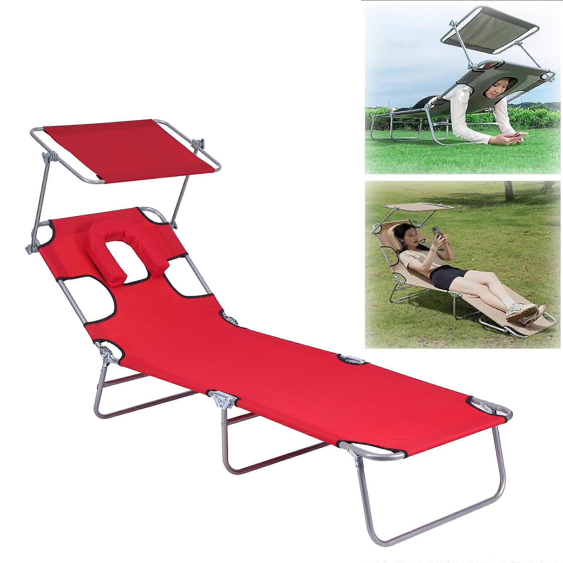 Beach Lounge Chair Backpack Style Reclining Lay Flat Sun Face Down Tanning Chair Folding Portable Camping Cot Red