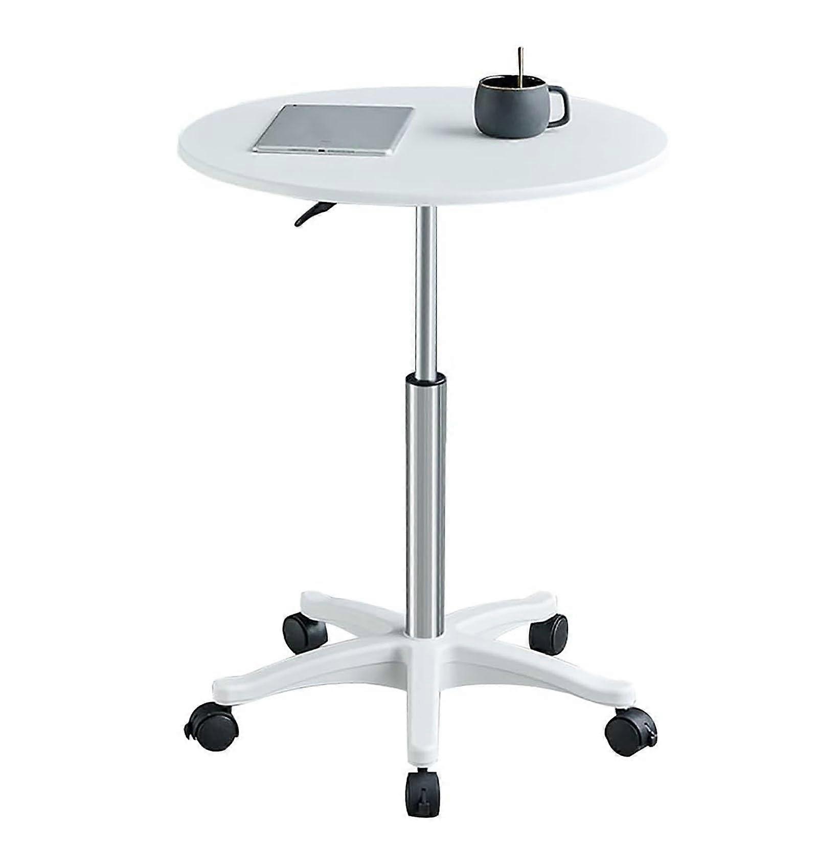 Standing Desk with Wheels, Adjustable Height White Laptop Table, 360° Rotation and Brake Rollers