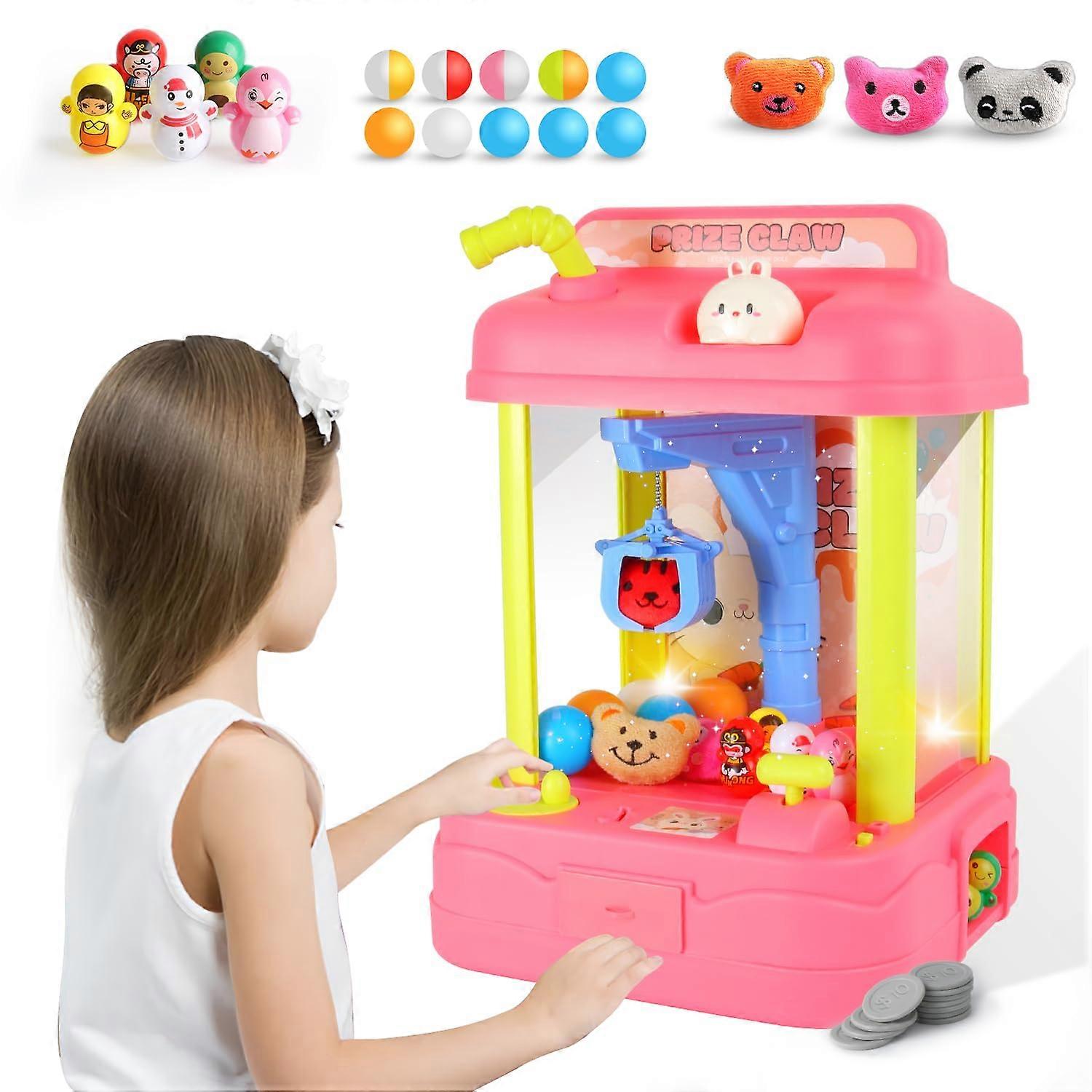 Mini Claw Machine for Kids with 18 Plush Toys, Pink Arcade Game, USB and Battery Powered Gift