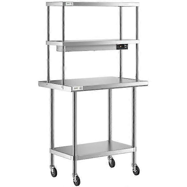 24x36 Stainless Steel Expeditor Table with Double Overshelf, Strip Warmer and Undershelf for Restaurant