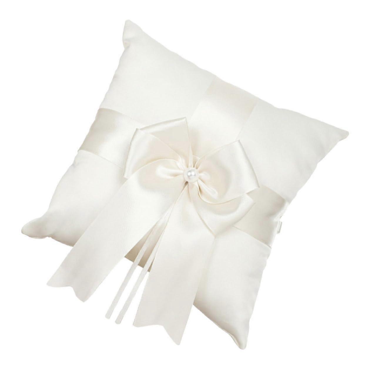 White Wedding Ring Bearer Pillow with Bowknot – Soft Romantic Ring Holder for Ceremony Decor