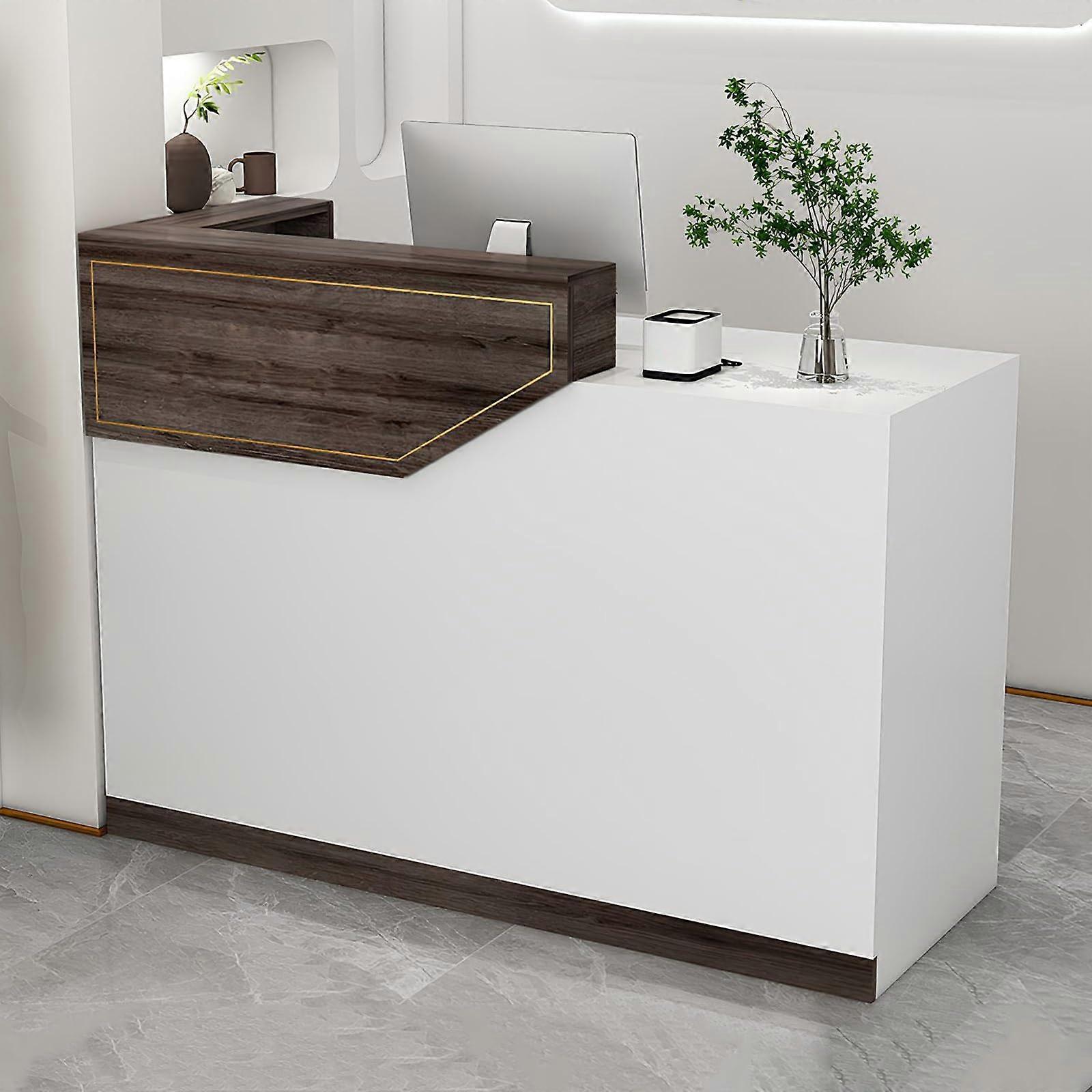 Modern Reception Desk with Lockable Drawer and Cabinet, MDF Front Counter for Office Salon 100cm